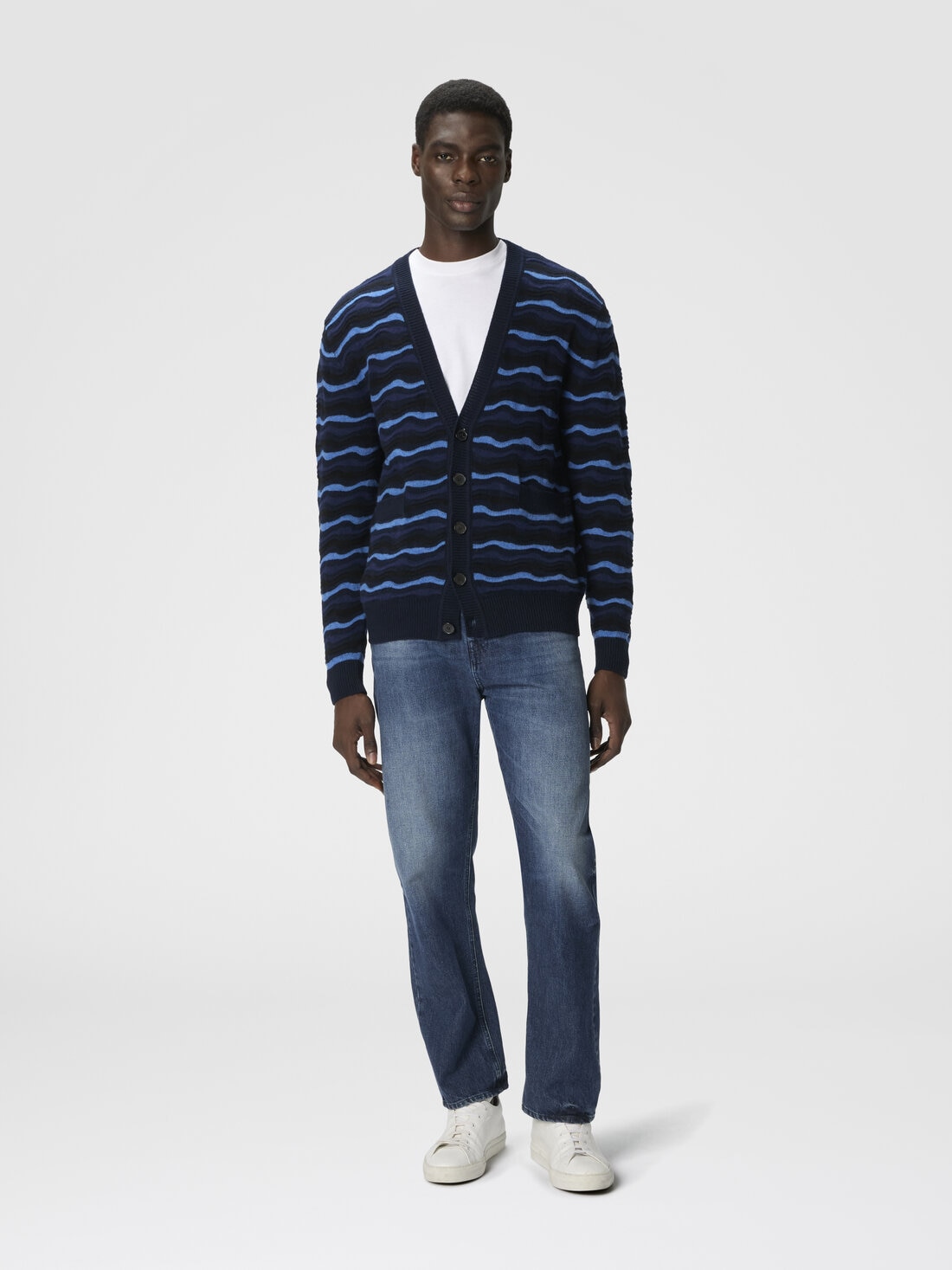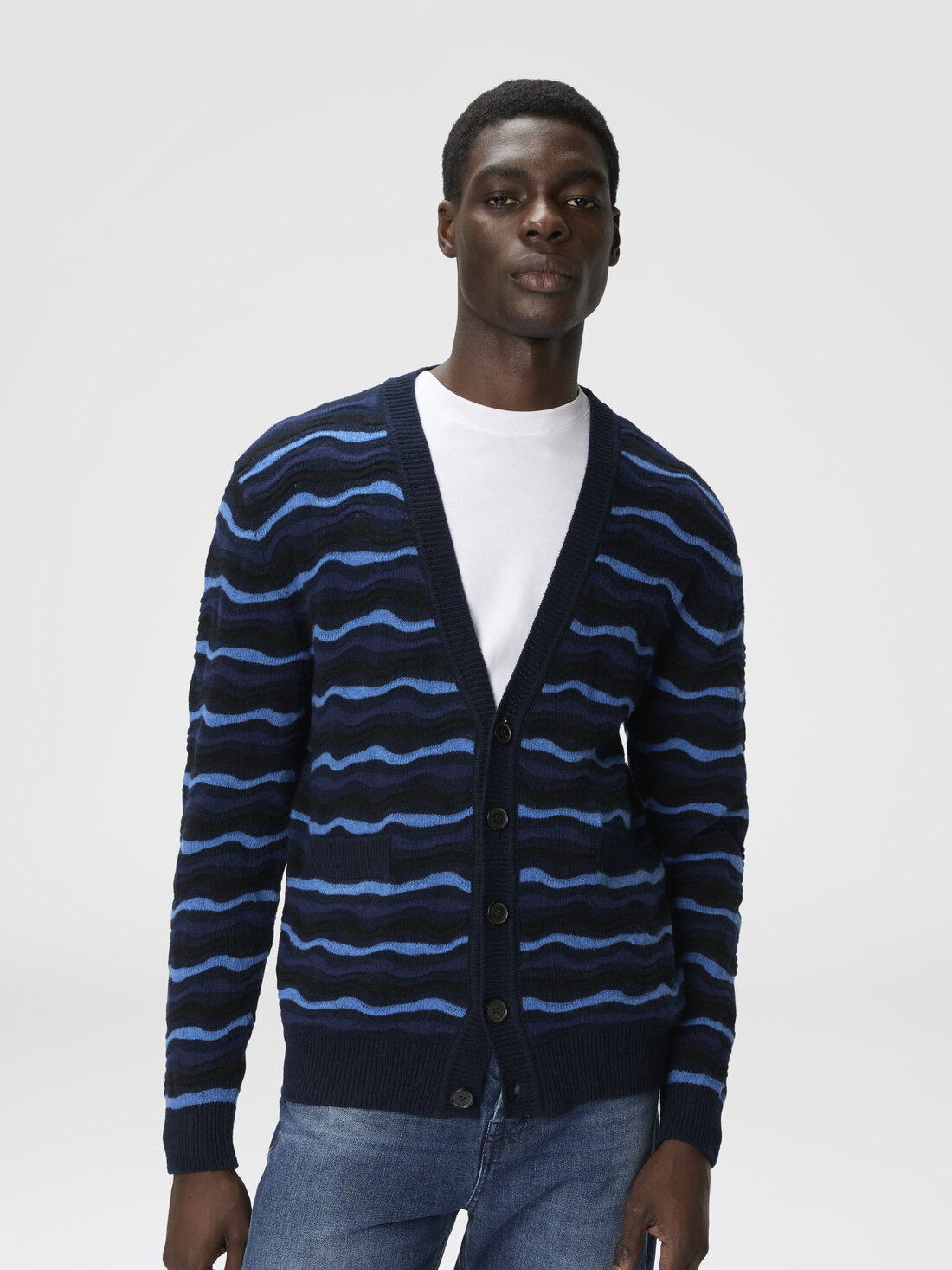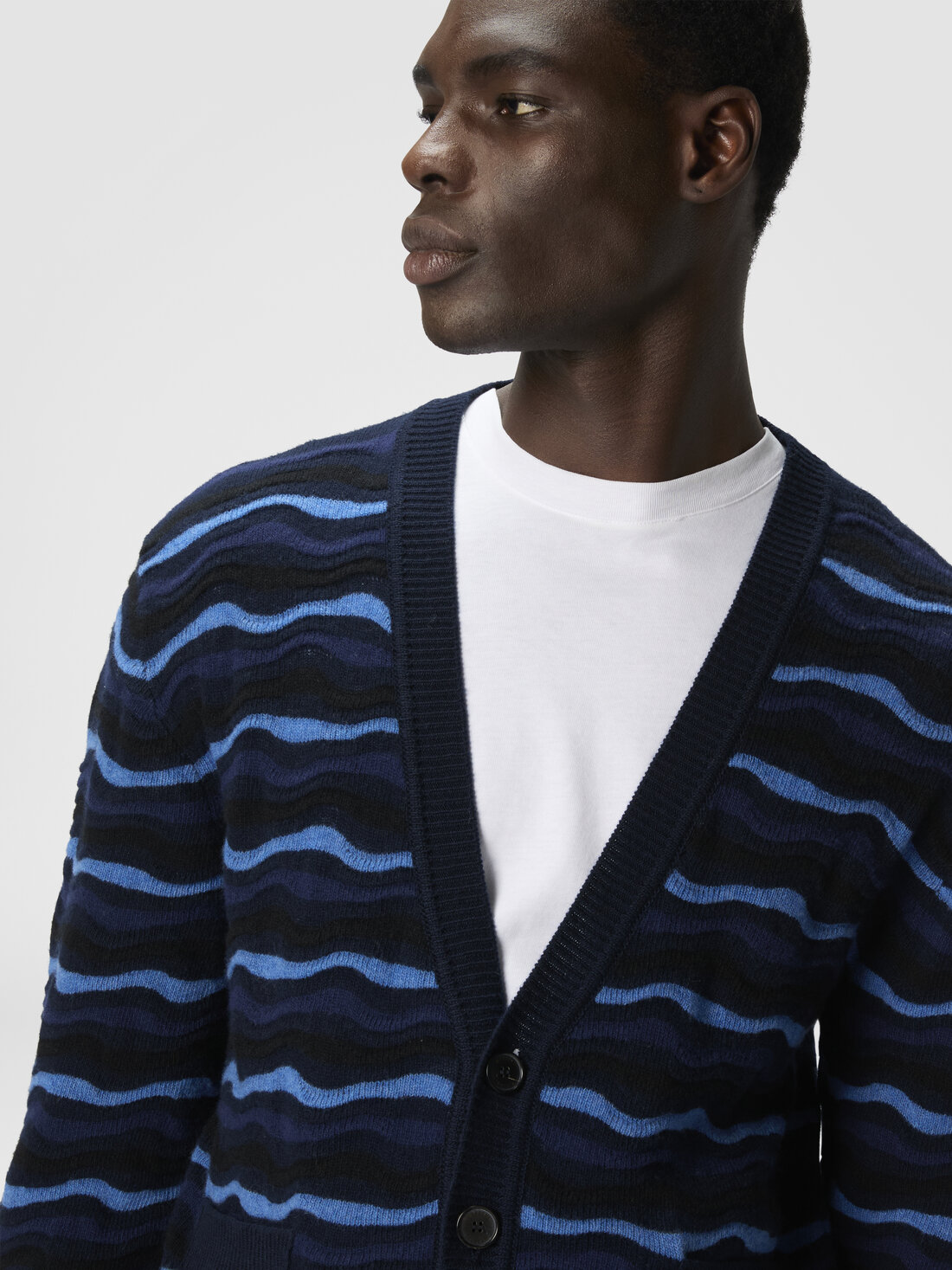 Raffiniert und handwerklich geprägt: Dieser Cardigan mit Knöpfen aus 100 % Wolle präsentiert sich mit wellenförmiger Struktur, die dem Modell Textur und Bewegung verleiht – ideal für einen anspruchsvollen Alltagslook.