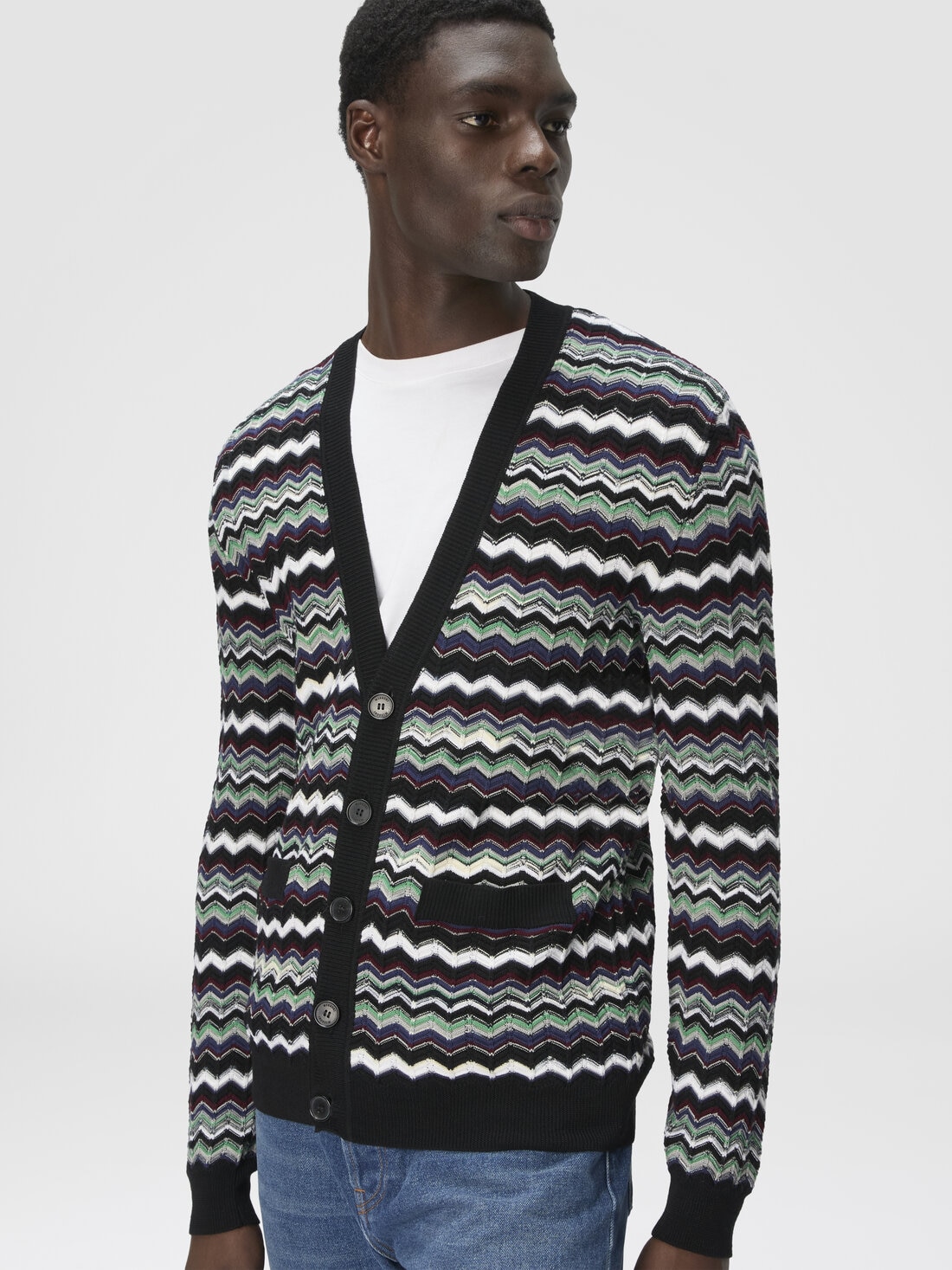 Zeitlos und charakterstark: Dieser Cardigan mit Knöpfen aus weichem Woll-Baumwoll-Mix lebt durch das ikonische Zickzack-Streifenmuster von Missoni – grafisch, elegant, unverwechselbar.