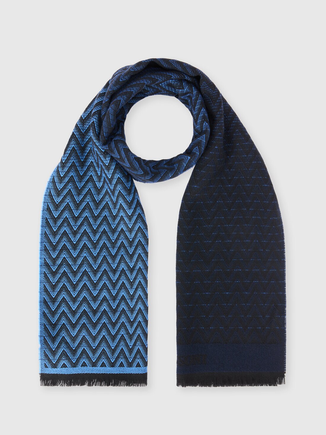 Ein Gesicht in Vitamintönen, kontrastiert durch den dunkleren Rücken, für diesen Herrenschal aus reiner Wolle. Es ist mit einem ausgefransten Profil versehen und mit dem Jacquard-Logo-Schriftzug personalisiert.
