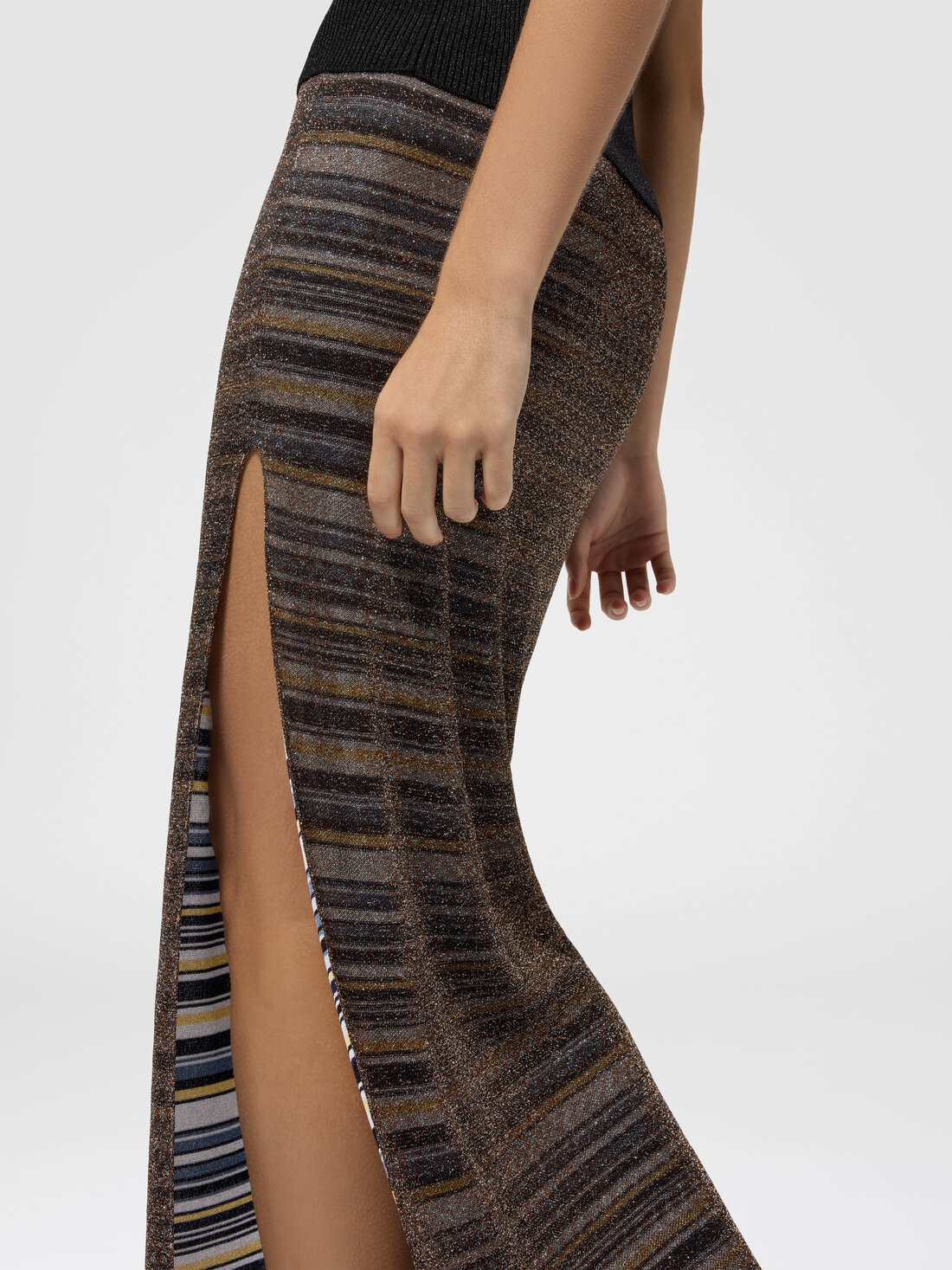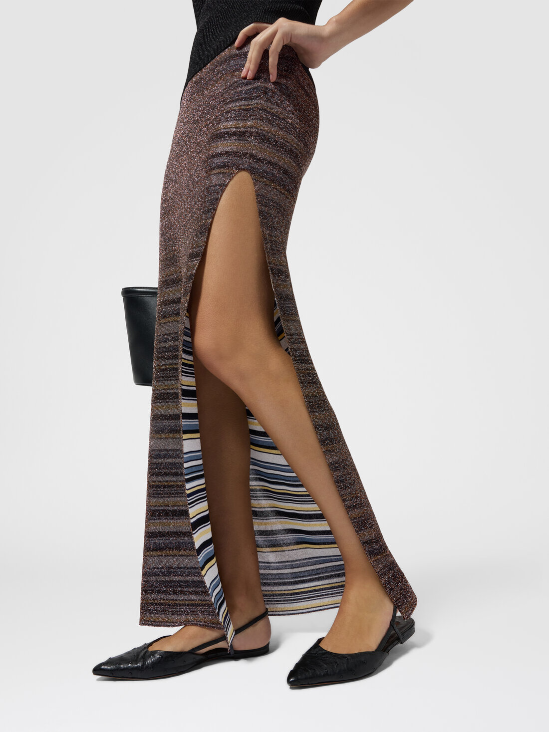 Gestreifter Lamé-Viskose-Langer Rock mit Schlitz