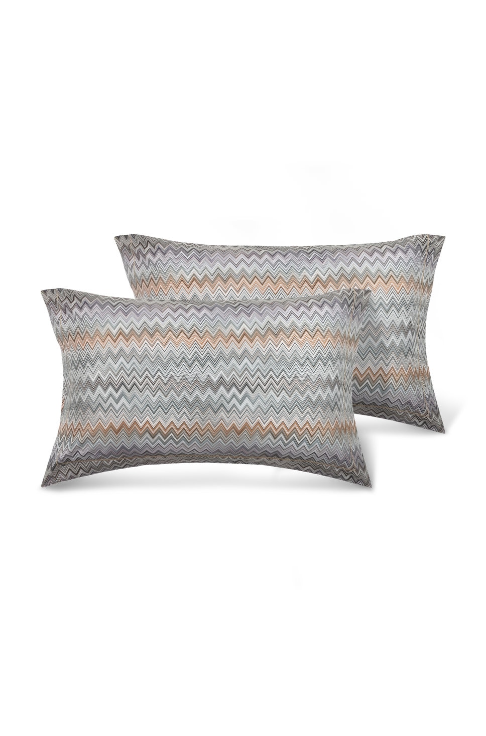 Ein dezentes Allover-Chevronmuster überzieht die Kopfkissenbezüge John aus reiner Baumwolle. Das zweiteilige Set mit Volants und Steppnähten in Kontrastfarbe kann mit einem Laken-Set im selben Farbton ergänzt werden oder mit etwas anderem, um der einfarbige Garnitur ein Hauch Schwung zu verleihen.