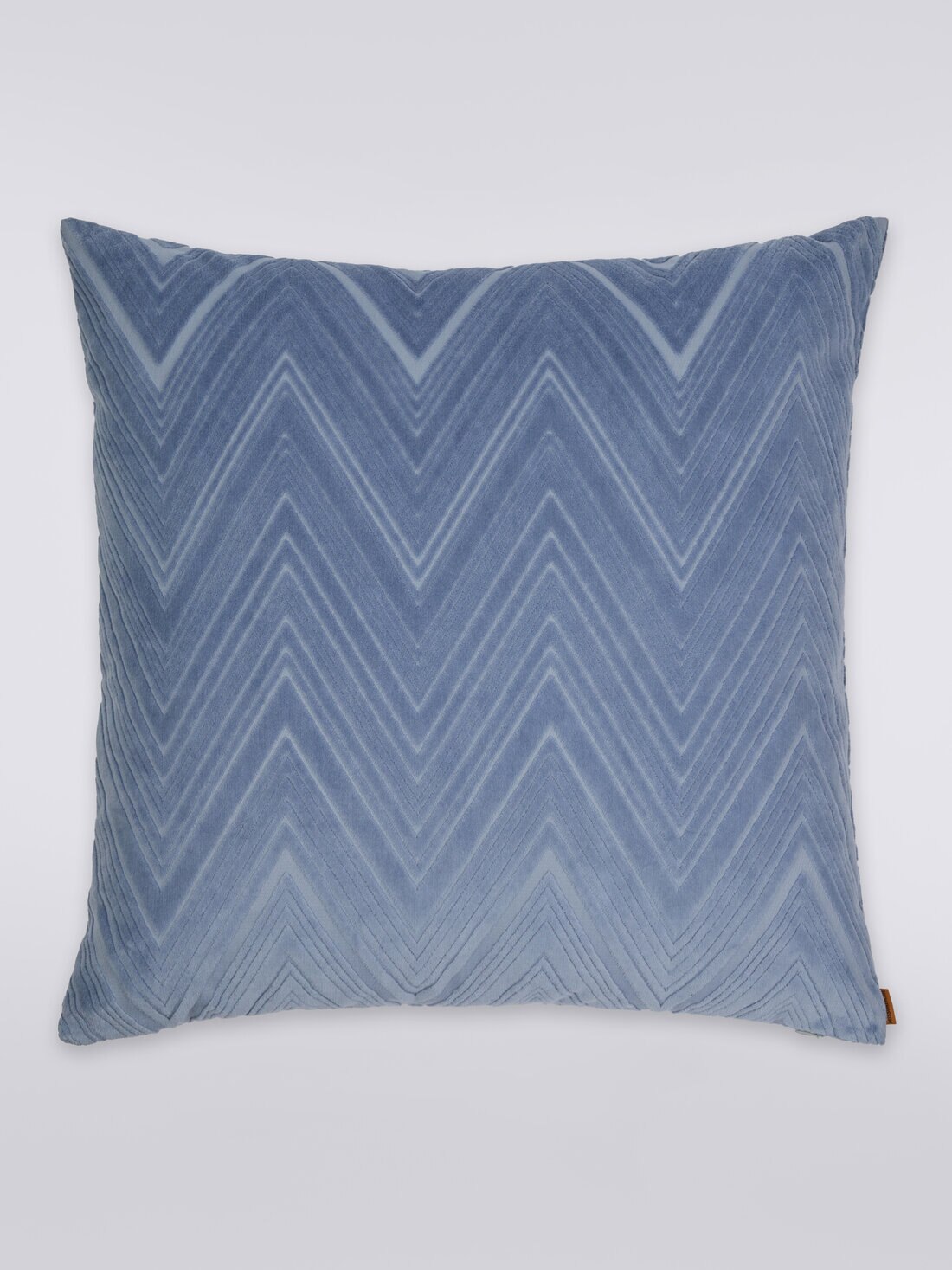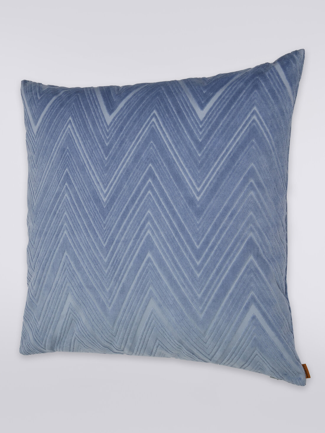 Der samtige Griff der Baumwoll-Chenille verleiht dem quadratischen Kissen Basel 60x60 cm eine weiche Oberfläche mit 3D-Effekt. Ein breites Chevron-Muster belebt die Oberfläche dieses Textil-Wohnaccessoires im Vintage-Stil.