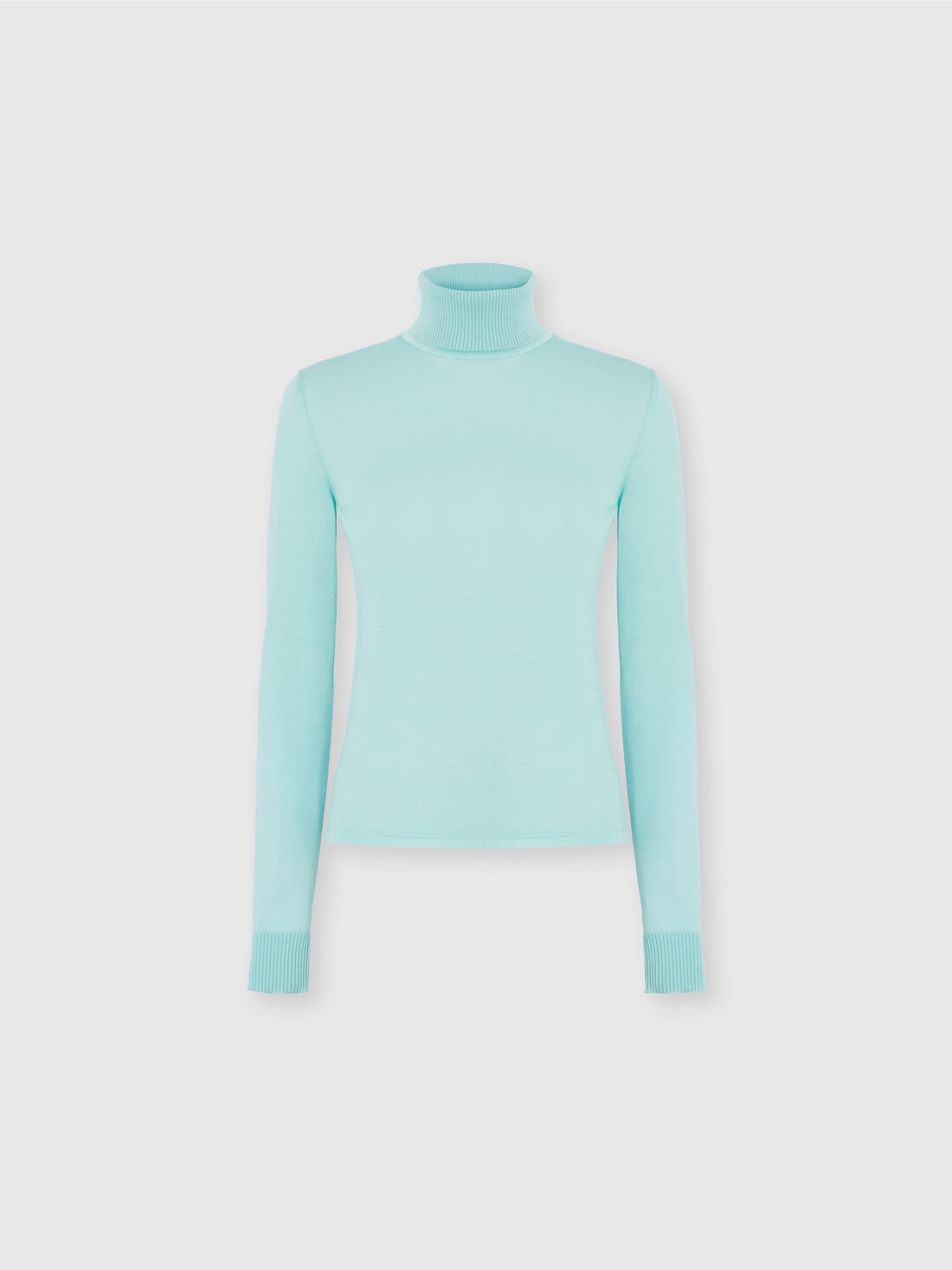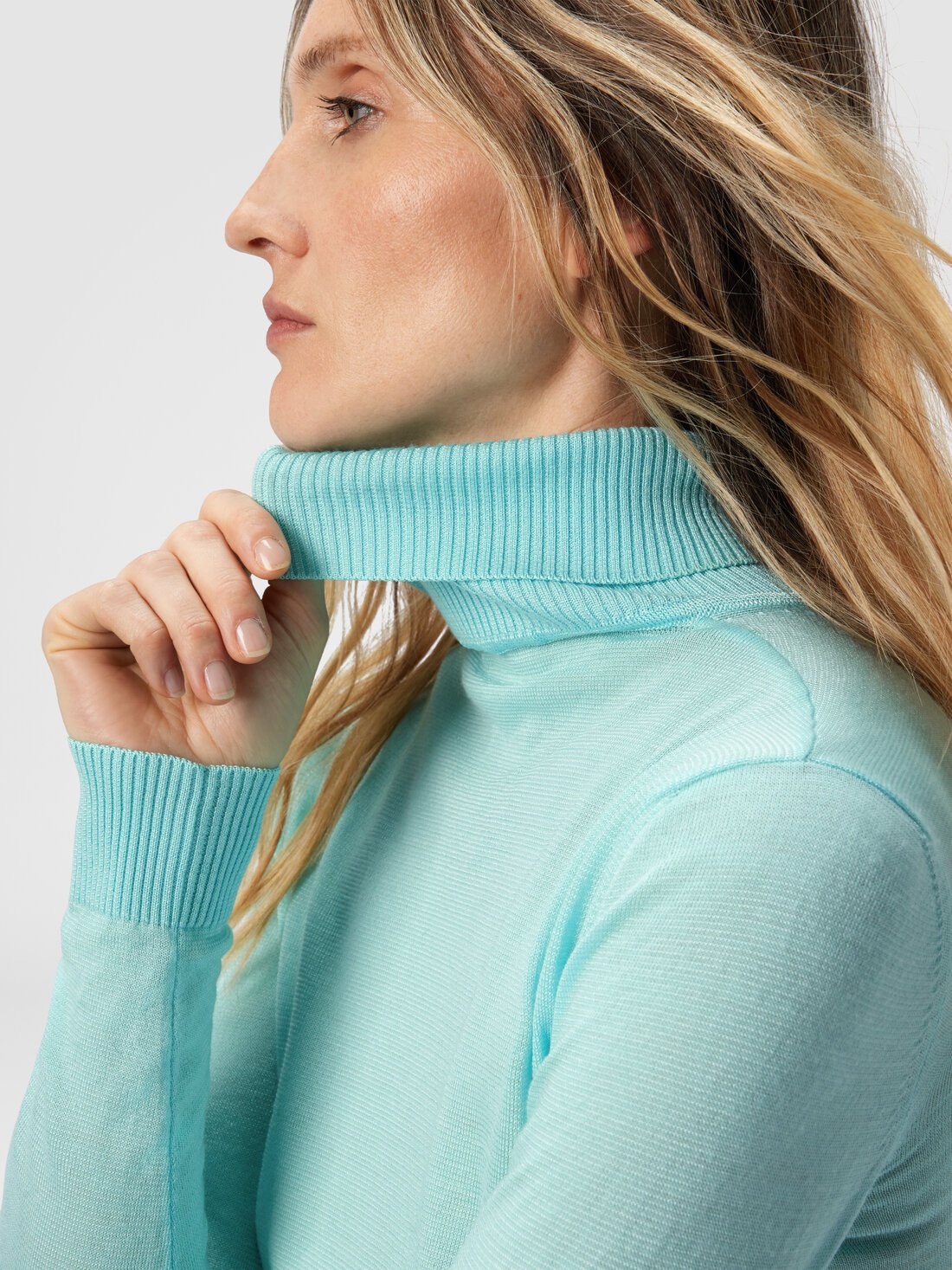 Schlichter, eleganter Rollkragenpullover in Glattstrickoptik, gefertigt aus weichem Viskose-Wollmix – ideal für elegante, reduzierte Looks.