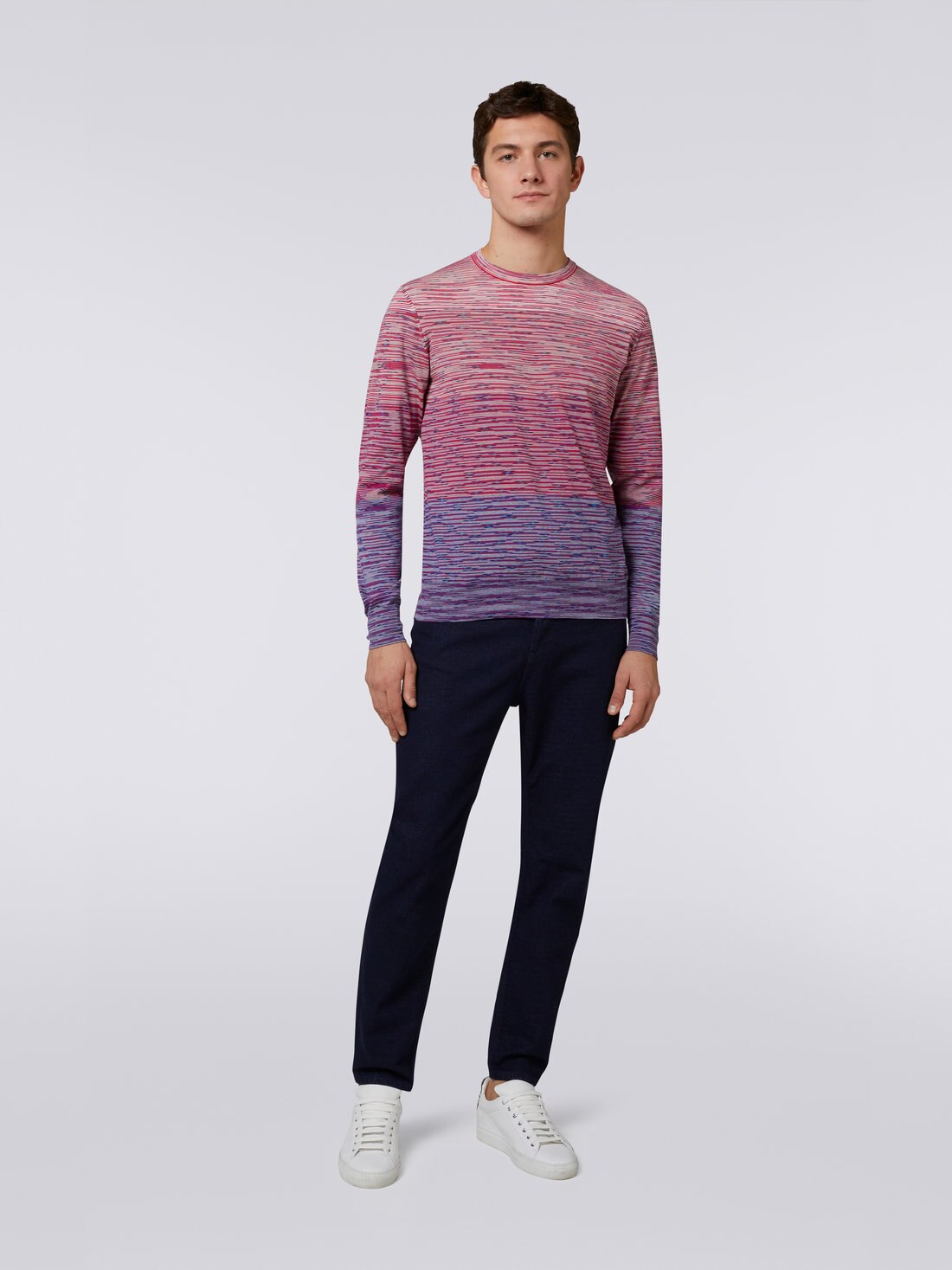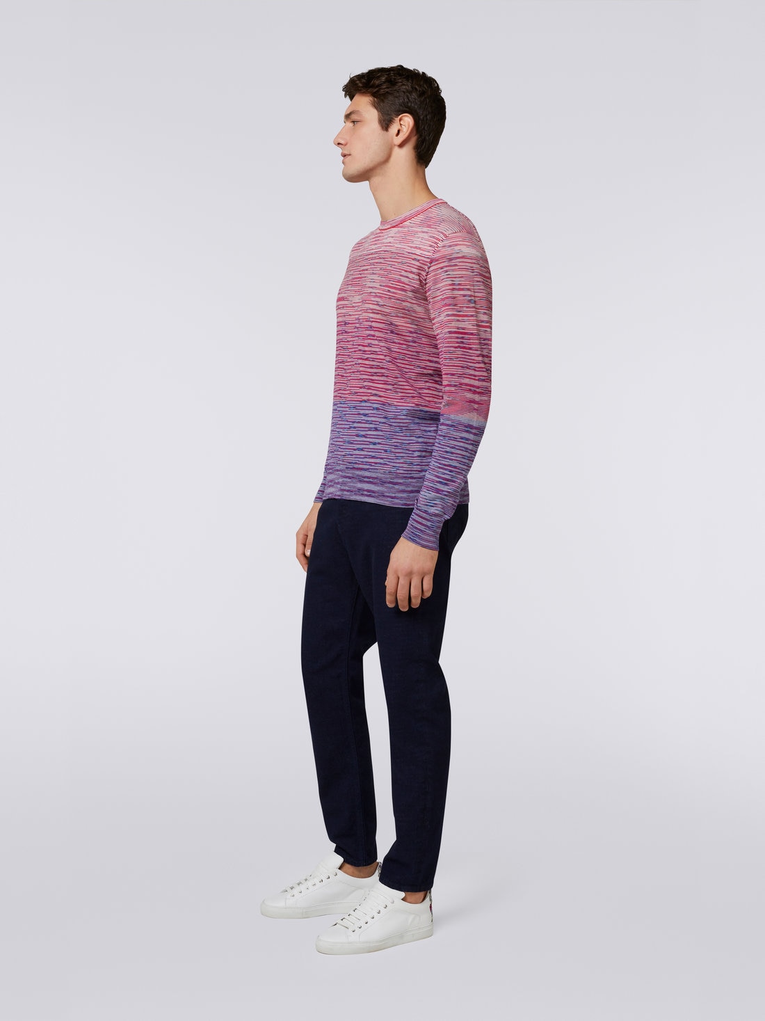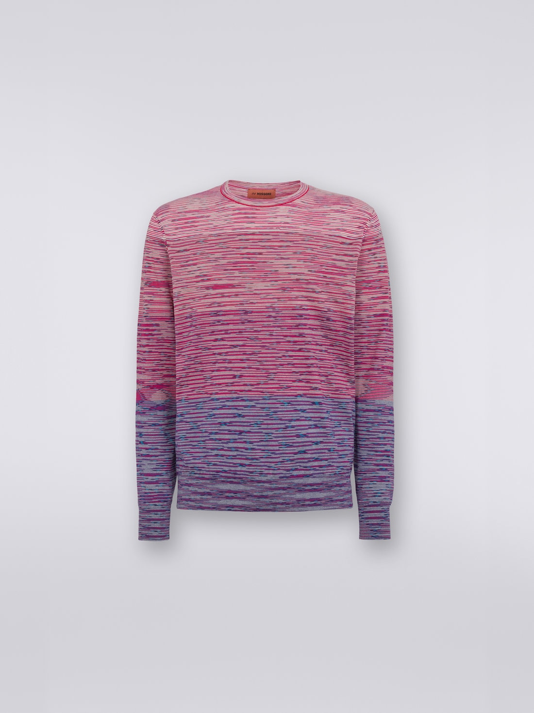 Das Slub-Motiv, das so viel zur Wiedererkennbarkeit von Missoni beigetragen hat, ist der absolute Star des Herrenpullovers mit Rundhalsausschnitt. Das aus einer Baumwollmischgewebe gefertigte Muster nutzt die Kraft der Farbe, um mit horizontal verlaufenden Dégradé-Streifen zum Leben zu erwachen.