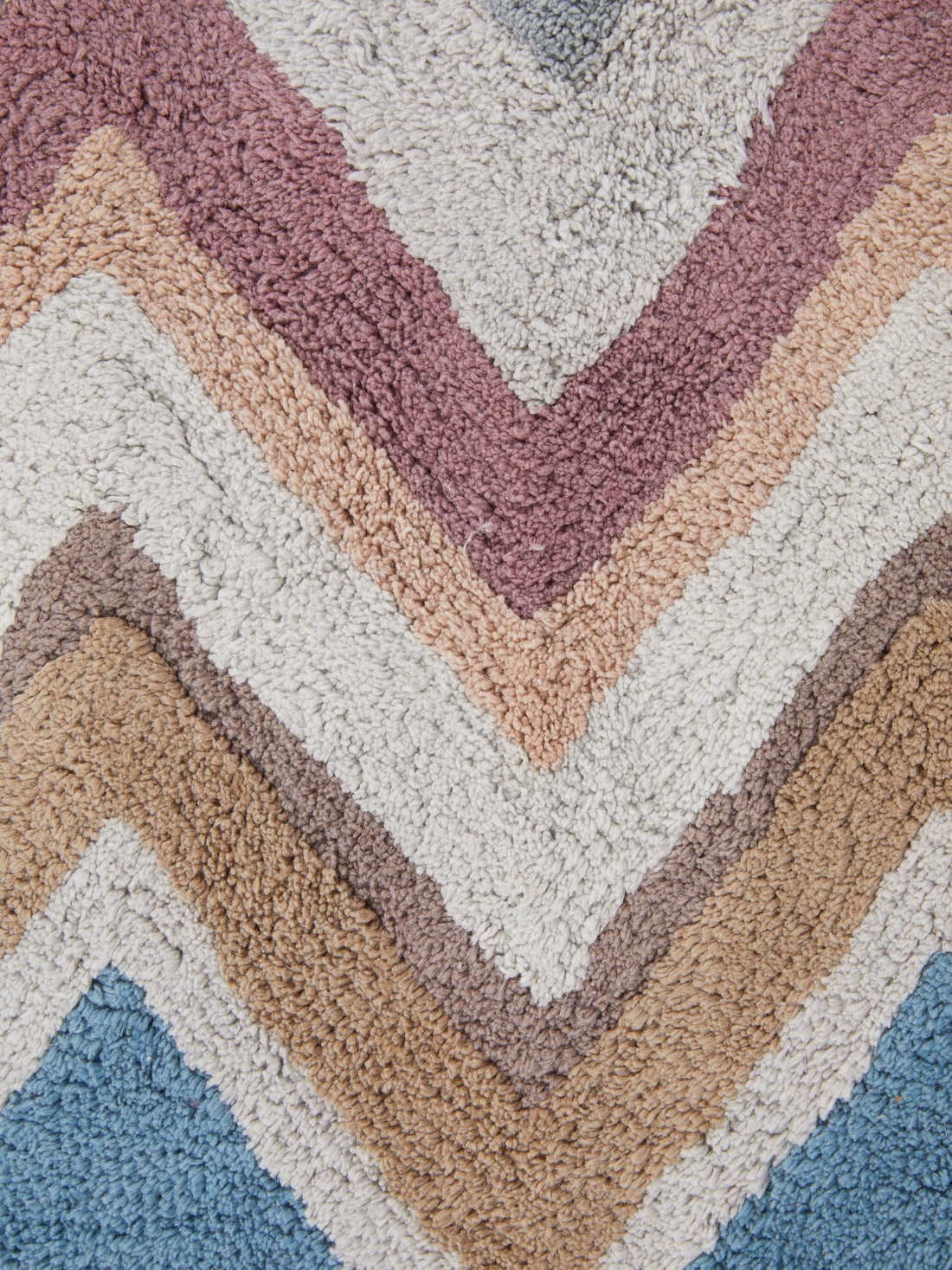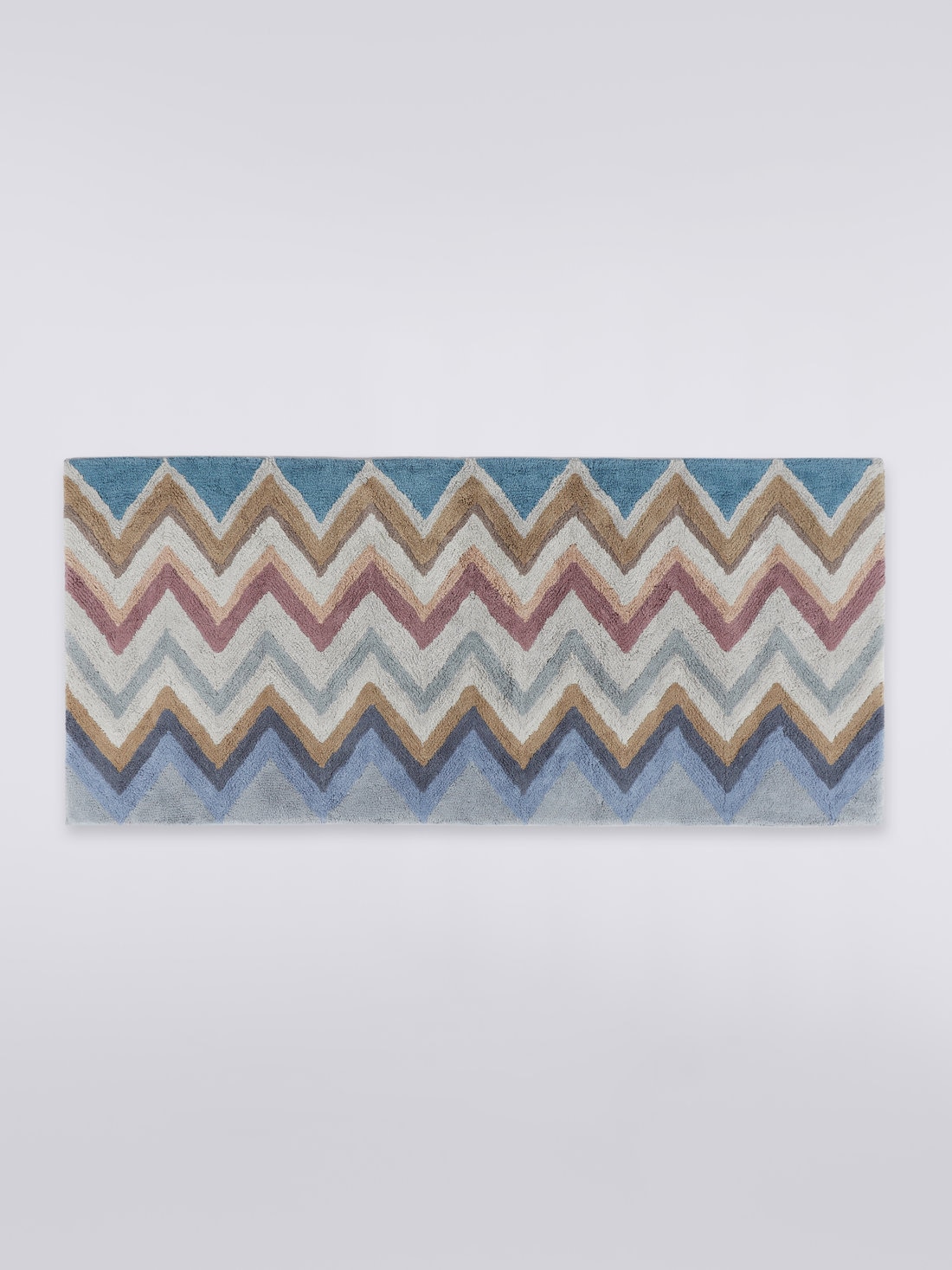 Die Kollektionen von MissoniHome zeichnen sich durch die Kreativität der farbenfrohen und lustigen Dekormotive aus, die der Einrichtung einen Hauch Lebendigkeit verleihen. Wie bei Amone, der Badematte 160x70 cm aus Baumwollfrottee, die durch den hypnotischen Verlauf des mehrfarbigen Zickzackmusters belebt wird.