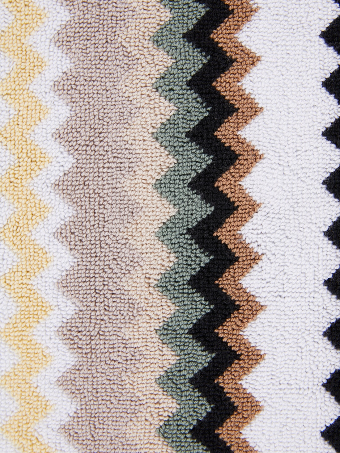 Die Badematte Curt 90x60 cm verrät mit ihrem markanten Allover-Zickzack-Muster eindeutig ihre Zugehörigkeit zum Universum Missoni. Das lebhafte Chevron-Muster verkörpert den unverkennbaren Stil MissoniHome und bestätigt die bestens wiedererkennbare Signatur der Marke.