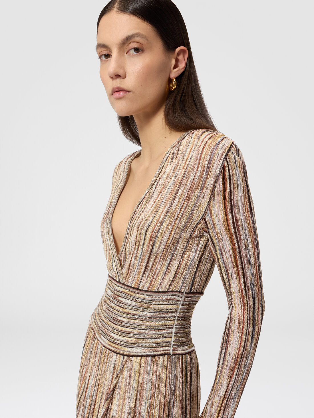 Geripptes Midikleid aus gemischter Viskose mit Pailletten