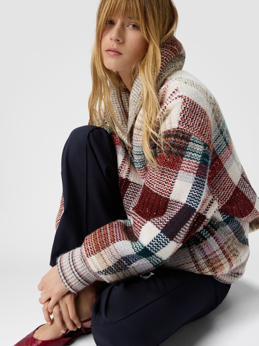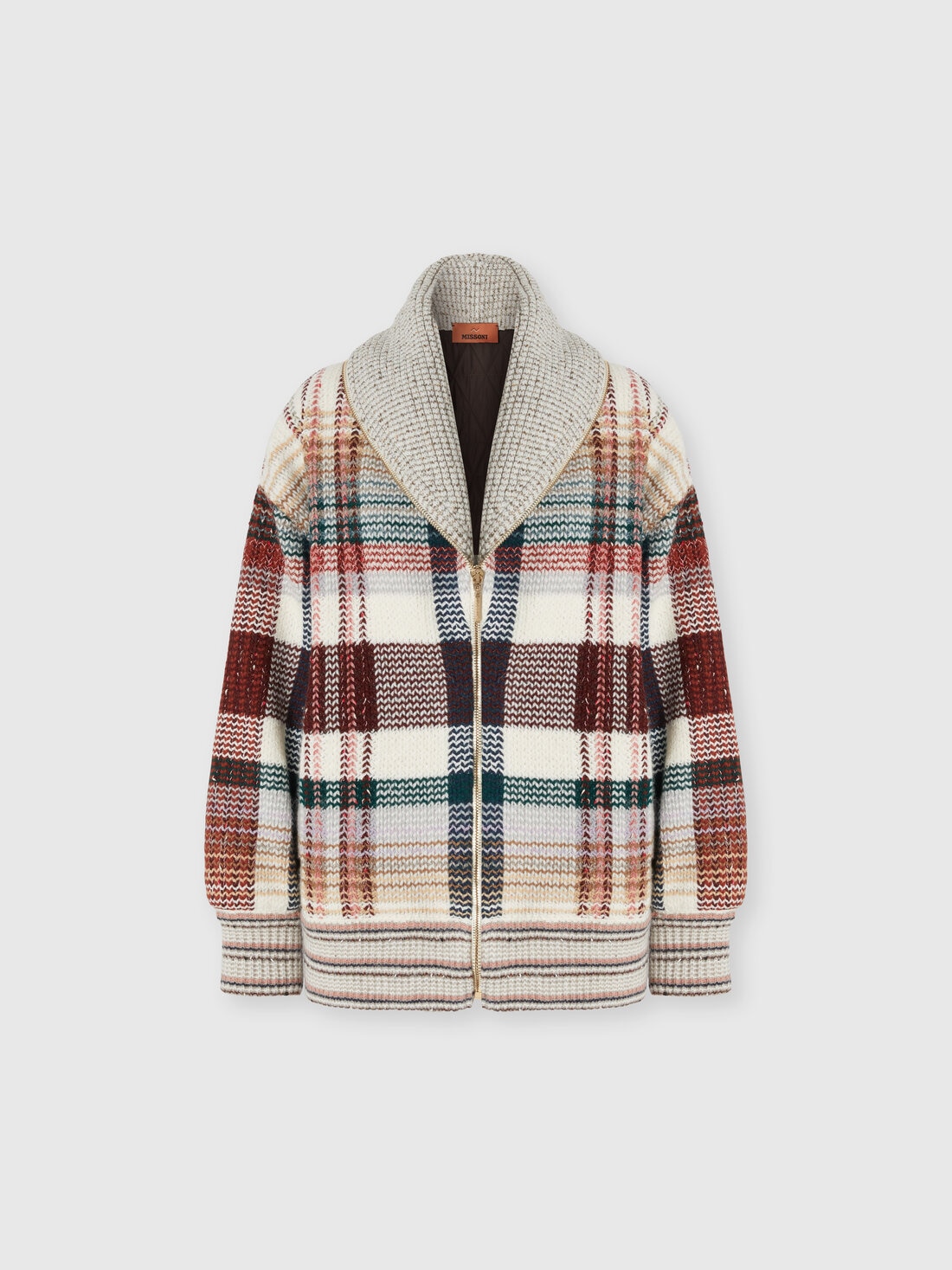 Diese gesteppte Damenjacke mit Reißverschluss und Schalkragen vereint maßgeschneiderte Eleganz und moderne Funktionalität. Hergestellt mit dem Caperdoni-Webstuhl und geprägt von einem feinen karierten Muster aus Wollmischung, bietet sie eine reiche und strukturierte Textur. Die Steppung sorgt für Wärme und Komfort, während der Frontreißverschluss und der Schalkragen einen zeitgenössischen und raffinierten Akzent setzen. Ein vielseitiges und markantes Kleidungsstück, perfekt für die kalte Jahreszeit mit Stil.