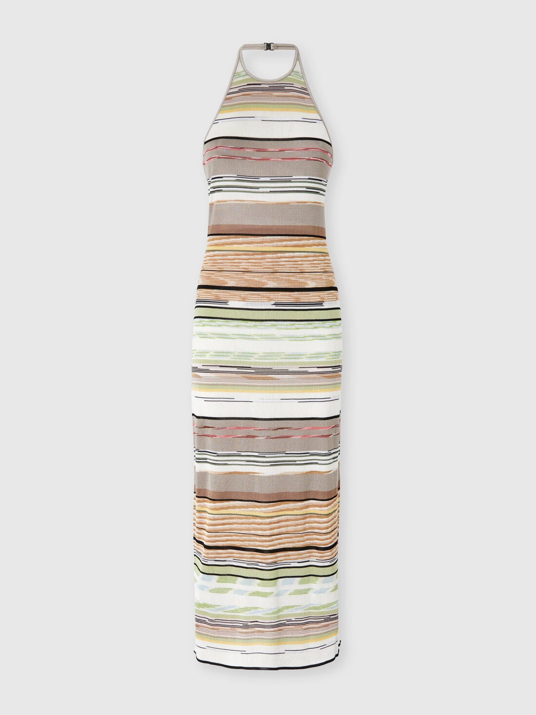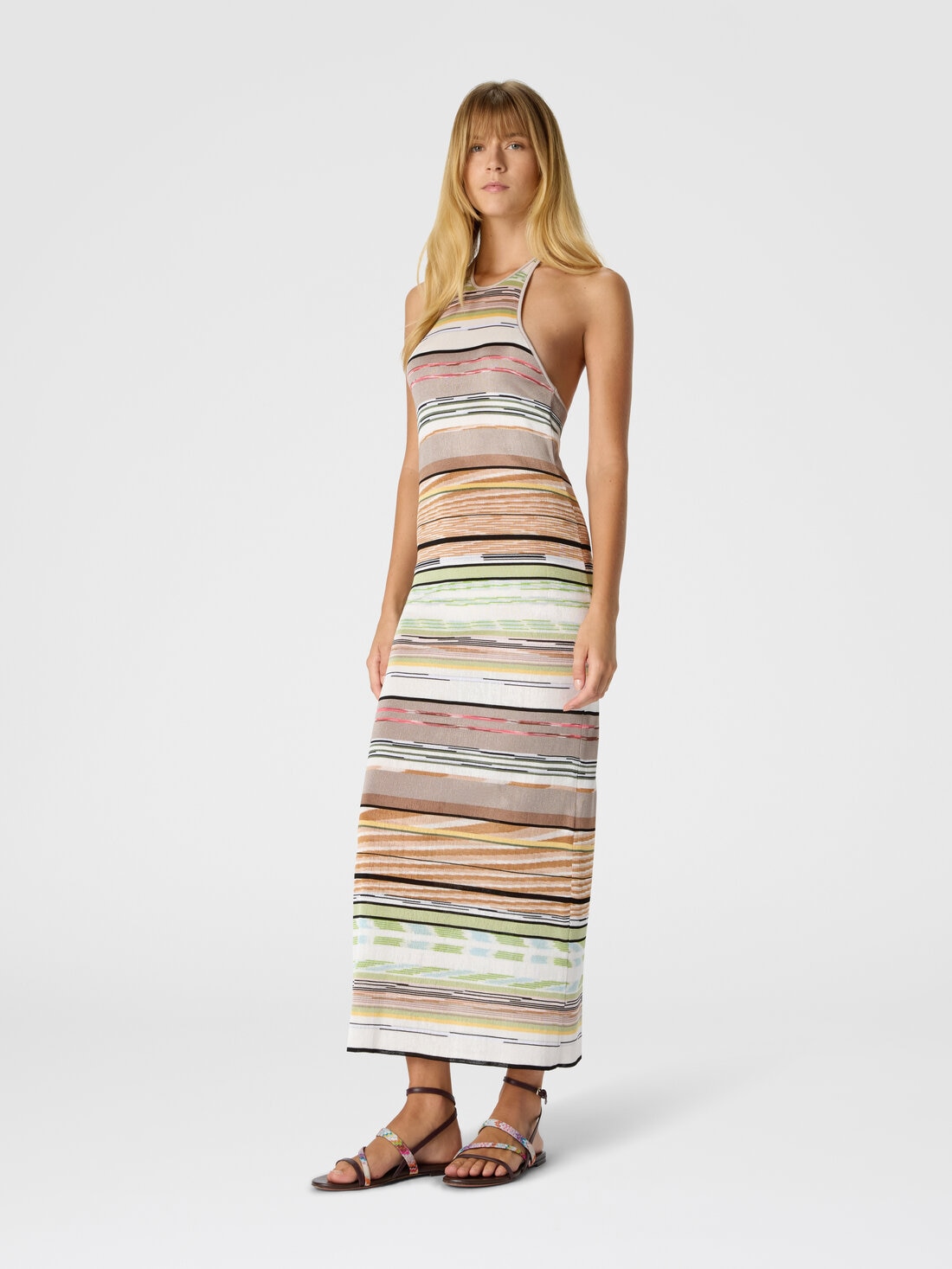 Gestreiftes Flamm-Viskose-Langkleid mit Neckholder