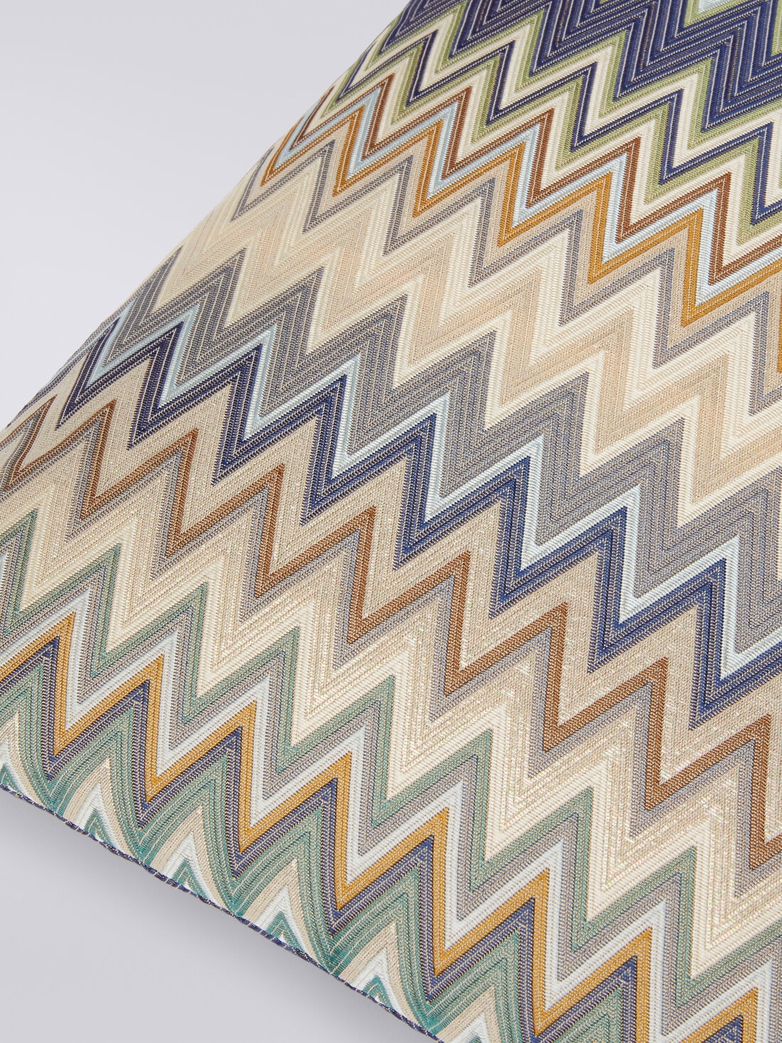 Ein hypnotisches, von Zickzacklinien durchzogenes Geflecht kennzeichnet die Verarbeitung des Kissens Masuleh 40x40 cm. Dieses Accessoire, das durch den Glanz der Seide im Textilmix besonders edel wirkt, verleiht jedem Wohnraum einen Hauch individueller Raffinesse.