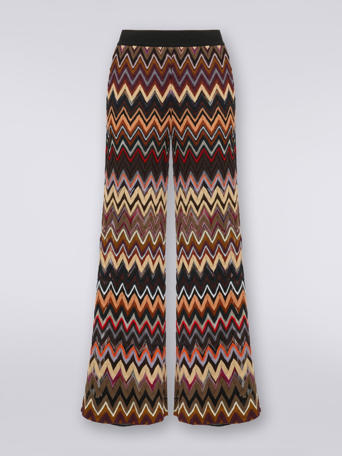 Die besondere Ausführung der Maschenware, ein charakteristisches Merkmal bei Missoni, kennzeichnet die Damen-Palazzohose. Das aus Wolle und Viskose gefertigte Modell mit elastischem Bund ist vollständig von einem Dégradé-Zickzackmuster durchzogen.