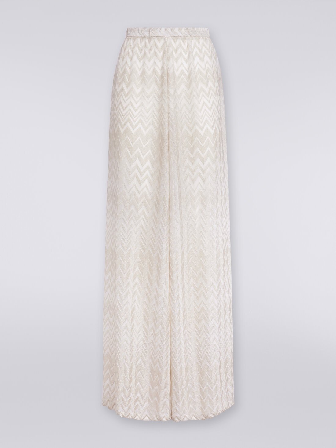 Die Hose zum Überziehen am Strand mit Ton-in-Ton-Chevronmuster besticht durch subtile und raffinierte Eleganz. Der Lamé-Stoff verleiht dem klassischen Chevronmuster von Missoni mehr Helligkeit und schafft einen äußerst raffinierten Look für Sommertage an Pool oder Strand.