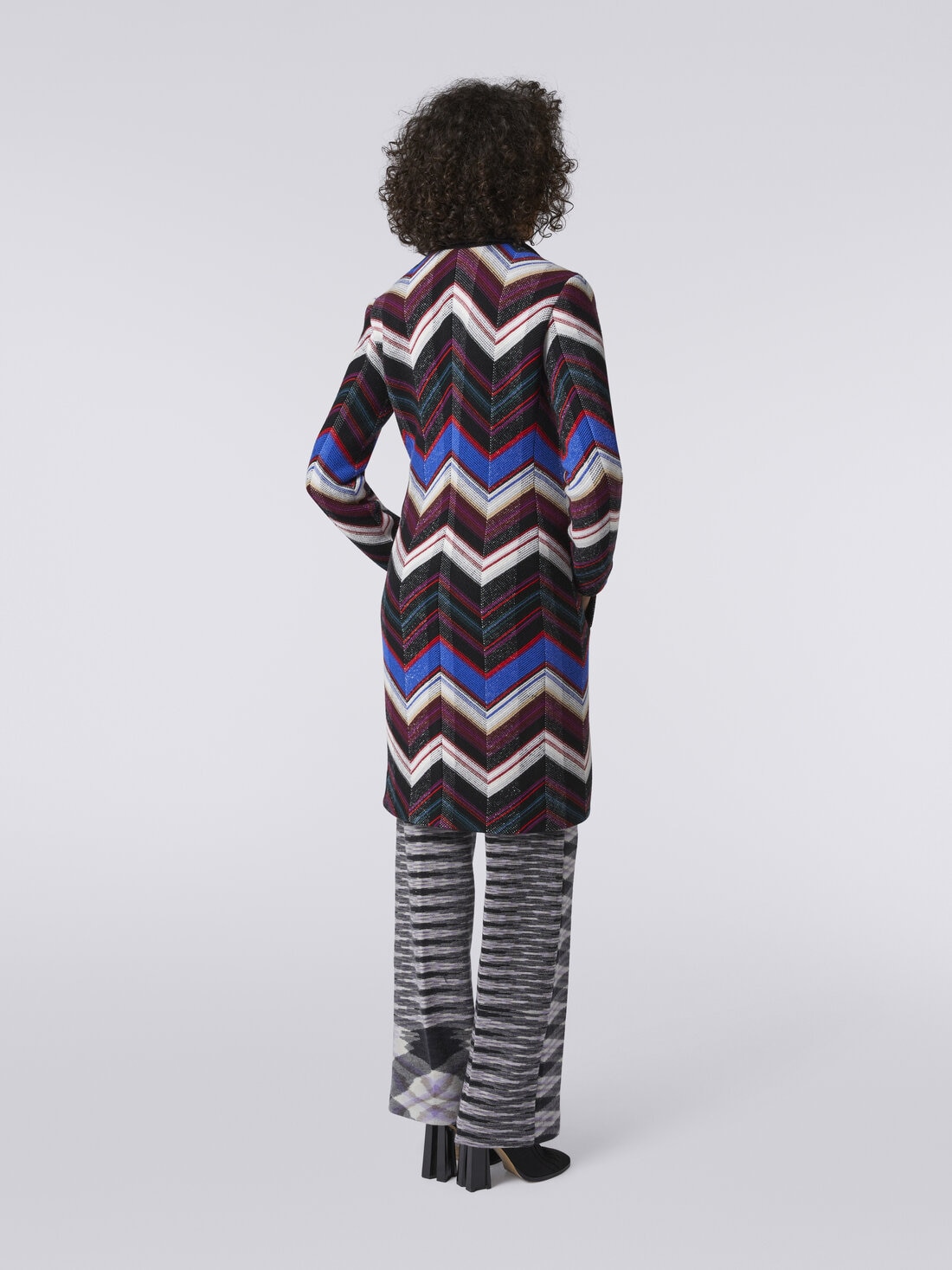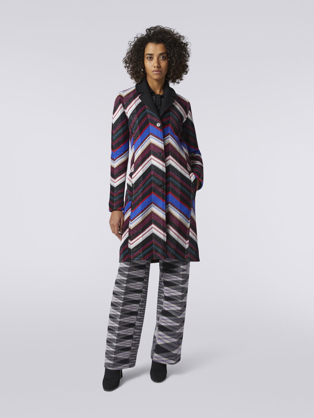 Kuschelige Wärme, um der kalten Jahreszeit stilvoll zu begegnen: So kommt der Damenmantel aus Wolle von Missoni. Das einreihige Modell mit Makro-Zickzackmuster ist nicht nur kuschelig, sondern sorgt auch für eine elegante Figur. Das Stück kommt mit Taschen und einen Logo-Knöpfen.