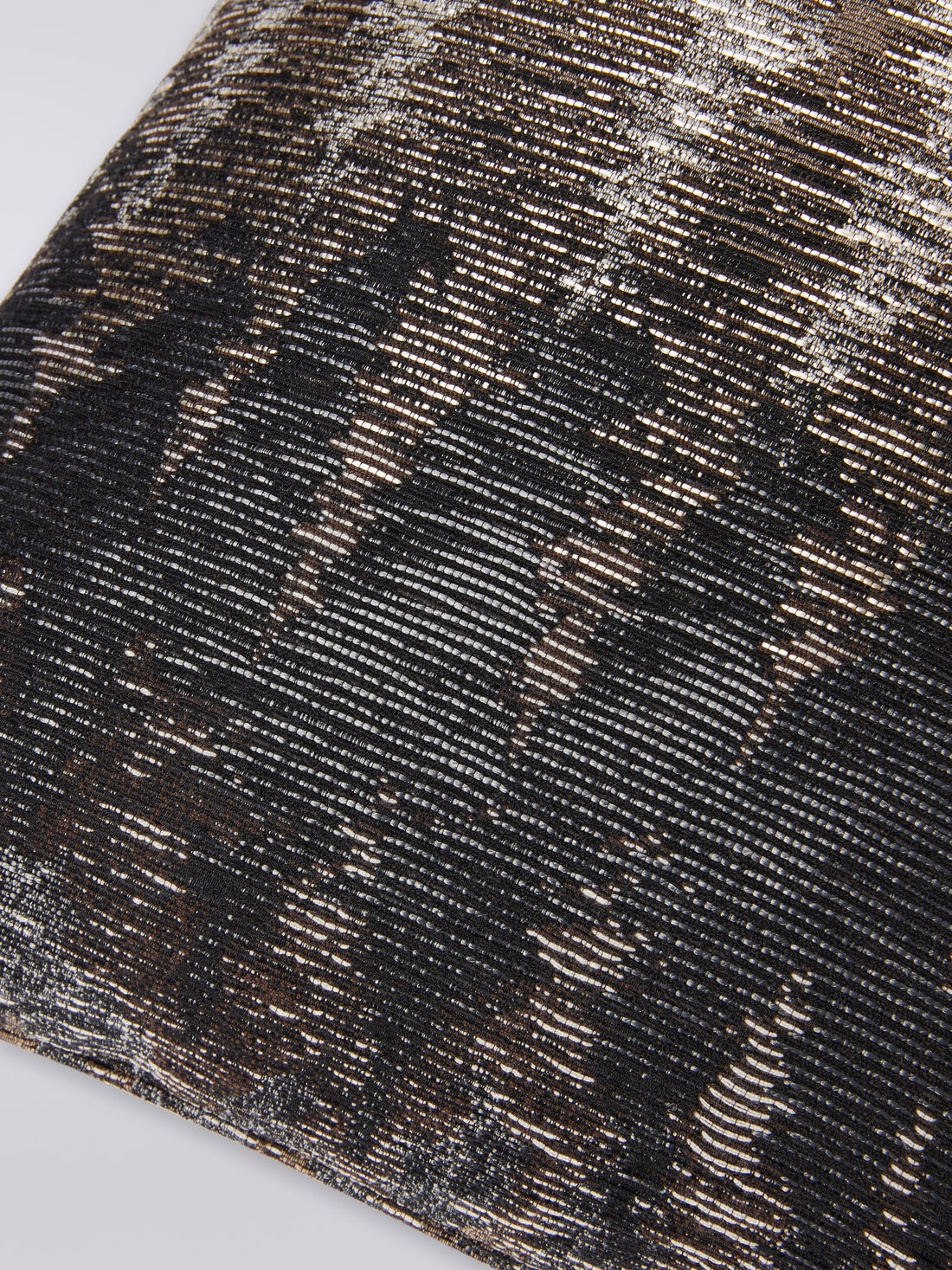 Das quadratische Kissen Agung 50x50 cm kommt abstrakt, mit klarer malerischer Ausstrahlung der Oberfläche. Der Wechsel von Glanz- und Vintage-Gewebe verleiht diesem Wohnaccessoire eine kostbar glitzernde Optik.