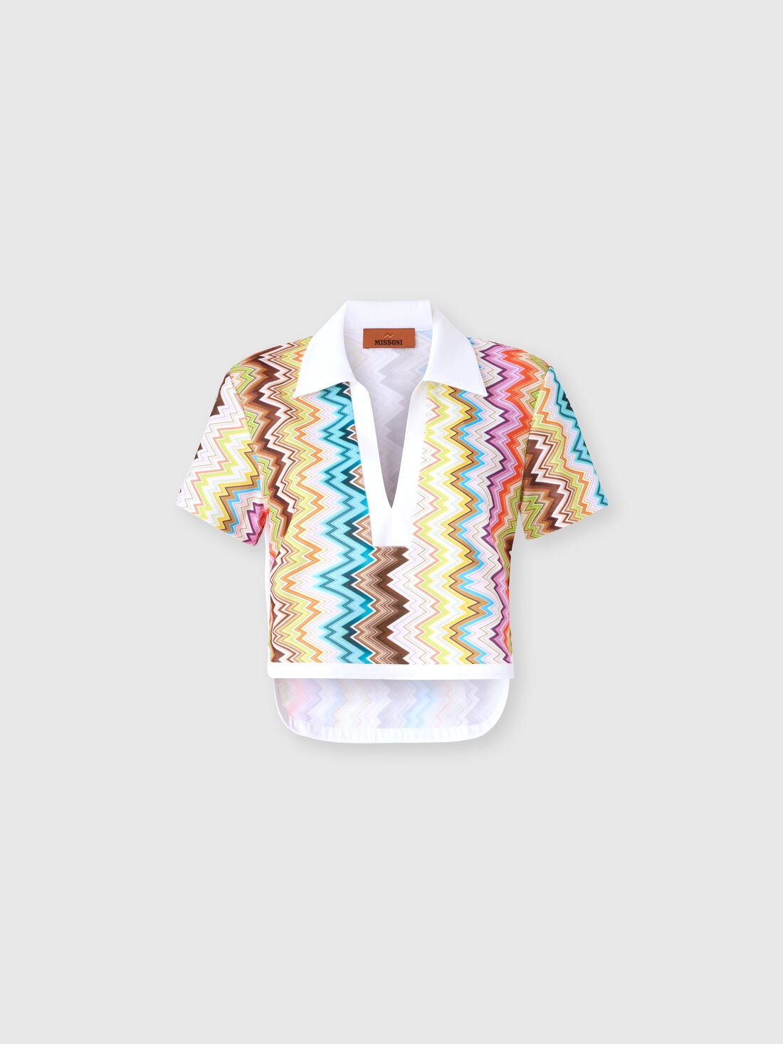 Kurzes Poloshirt aus bedrucktem Frottee mit Zickzackmotiv
