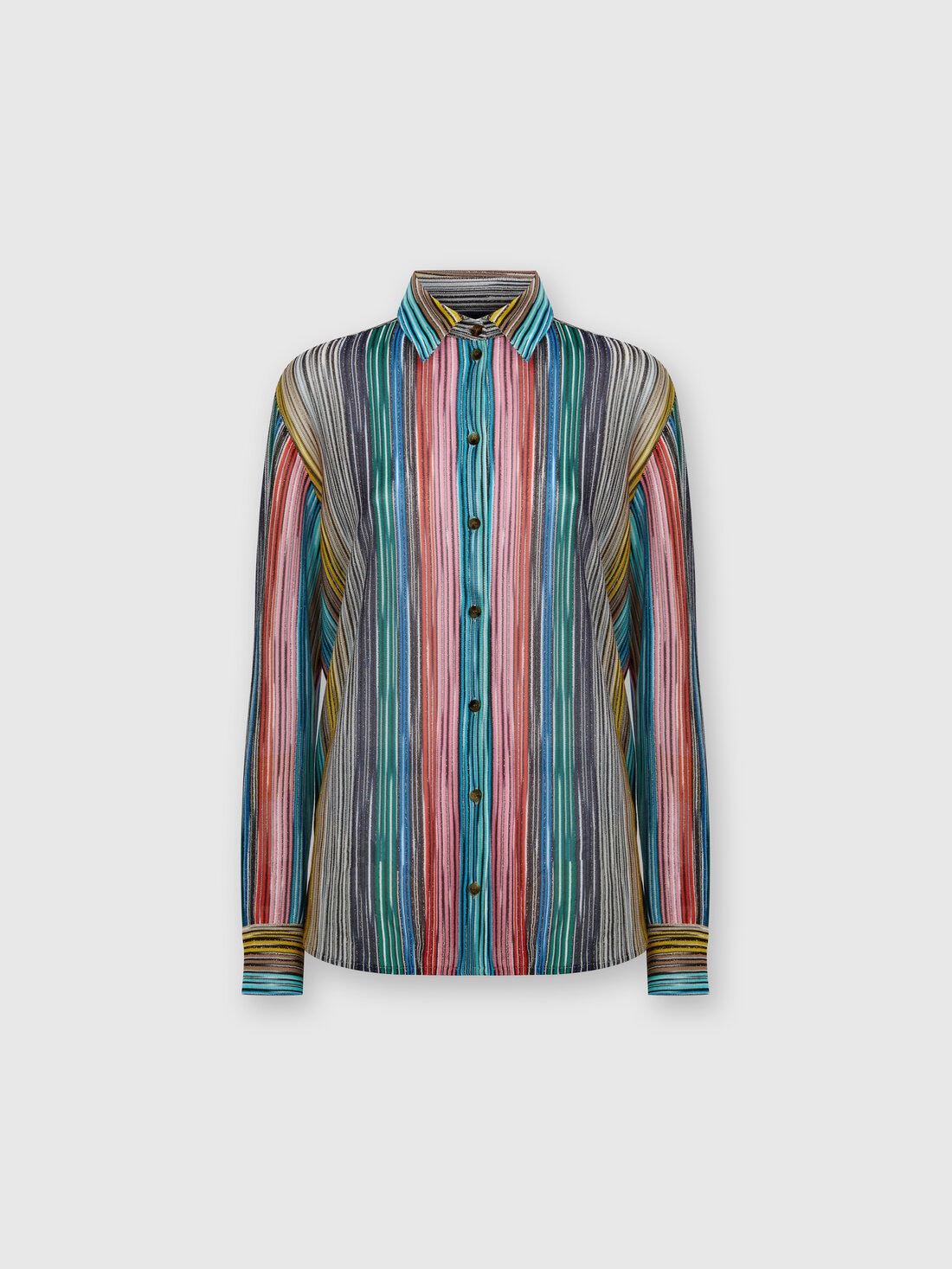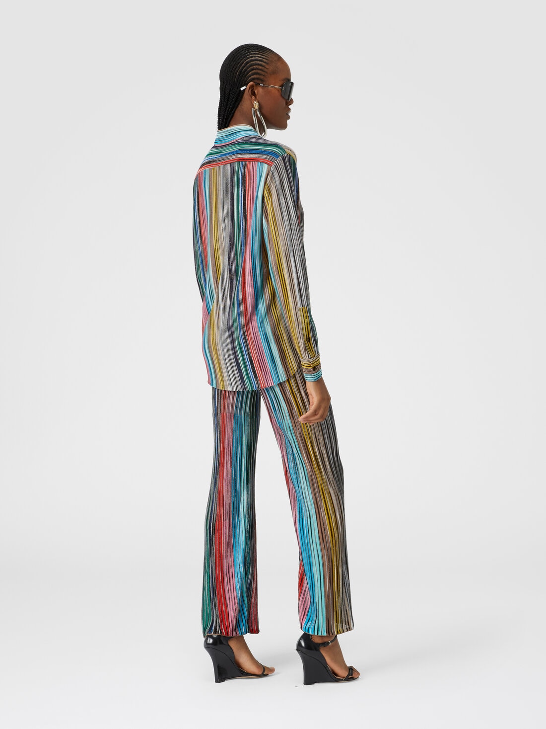 Leichter Lamé-Slub-Ripp-Viskose-Strick für das Hemd, der die Regeln des Genres gemäß der DNA von Missoni neu schreibt. Casual war noch nie so schick.