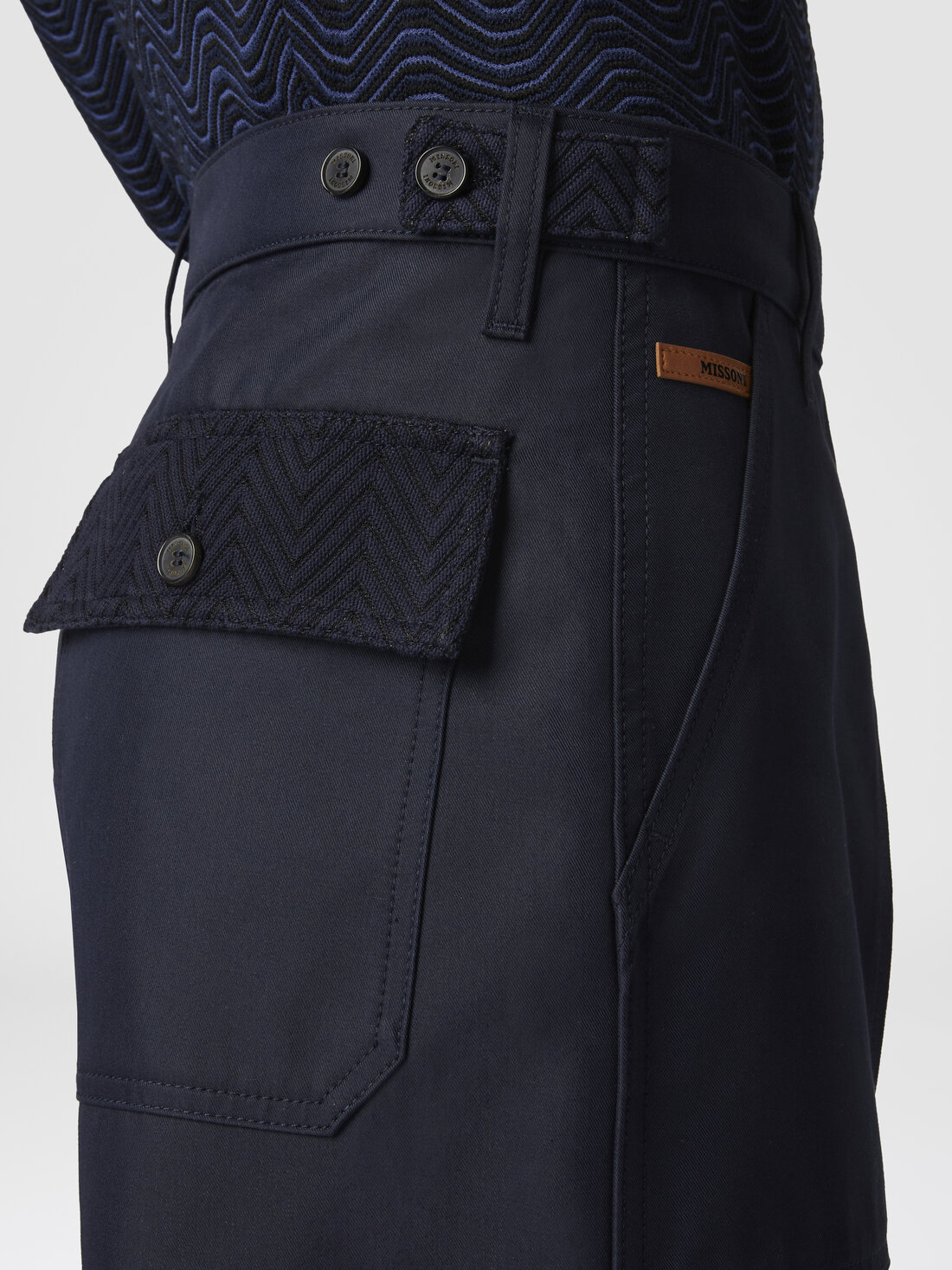 Der Drill aus Baumwollmischung, ein Stoff mit einem leistungsstarken und tadellosen Charakter, garantiert der Cargohose eine maßgeschneiderte Passform.