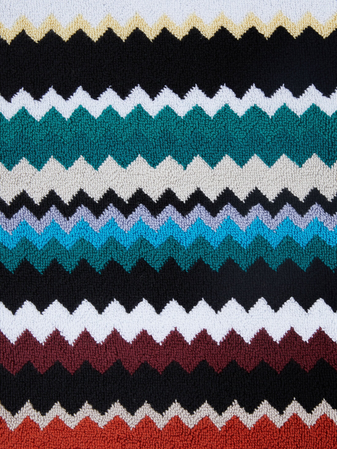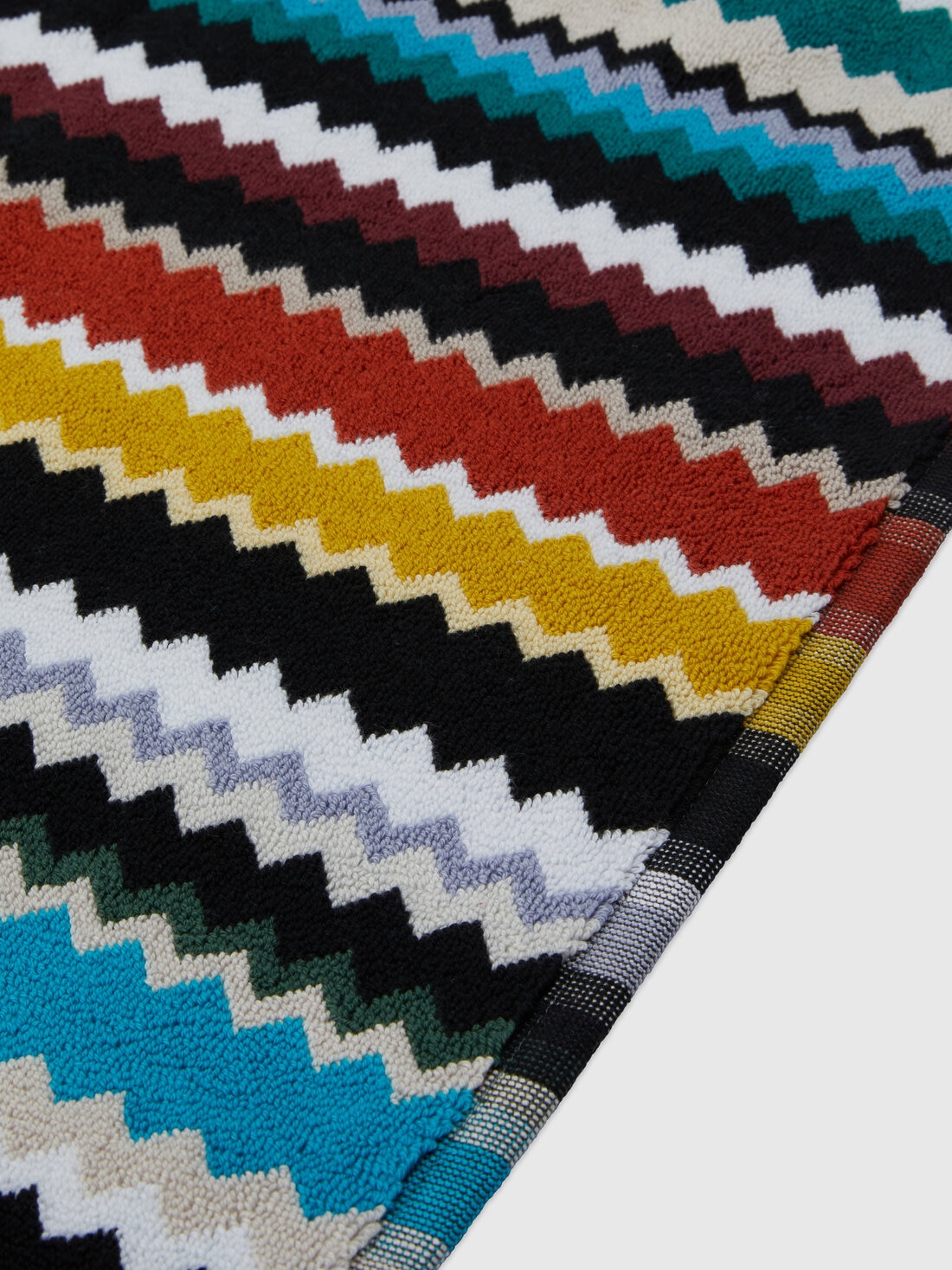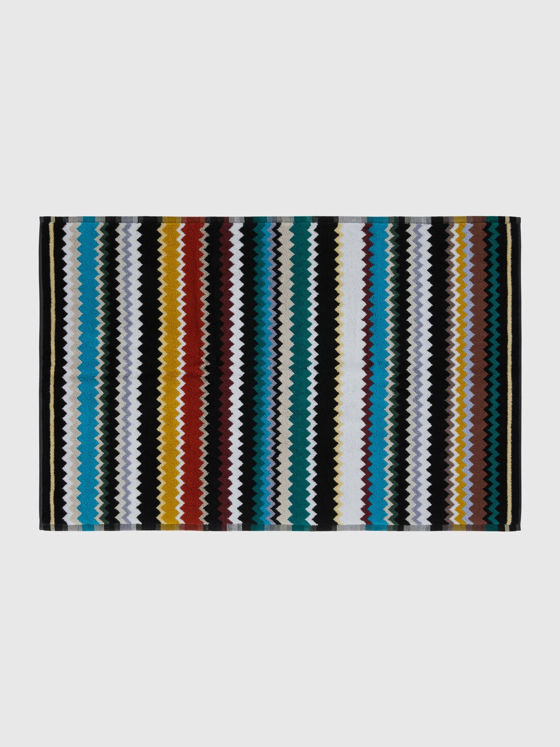 Die Badematte Curt 90x60 cm verrät mit ihrem markanten Allover-Zickzack-Muster eindeutig ihre Zugehörigkeit zum Universum Missoni. Das lebhafte Chevron-Muster verkörpert den unverkennbaren Stil MissoniHome und bestätigt die bestens wiedererkennbare Signatur der Marke.