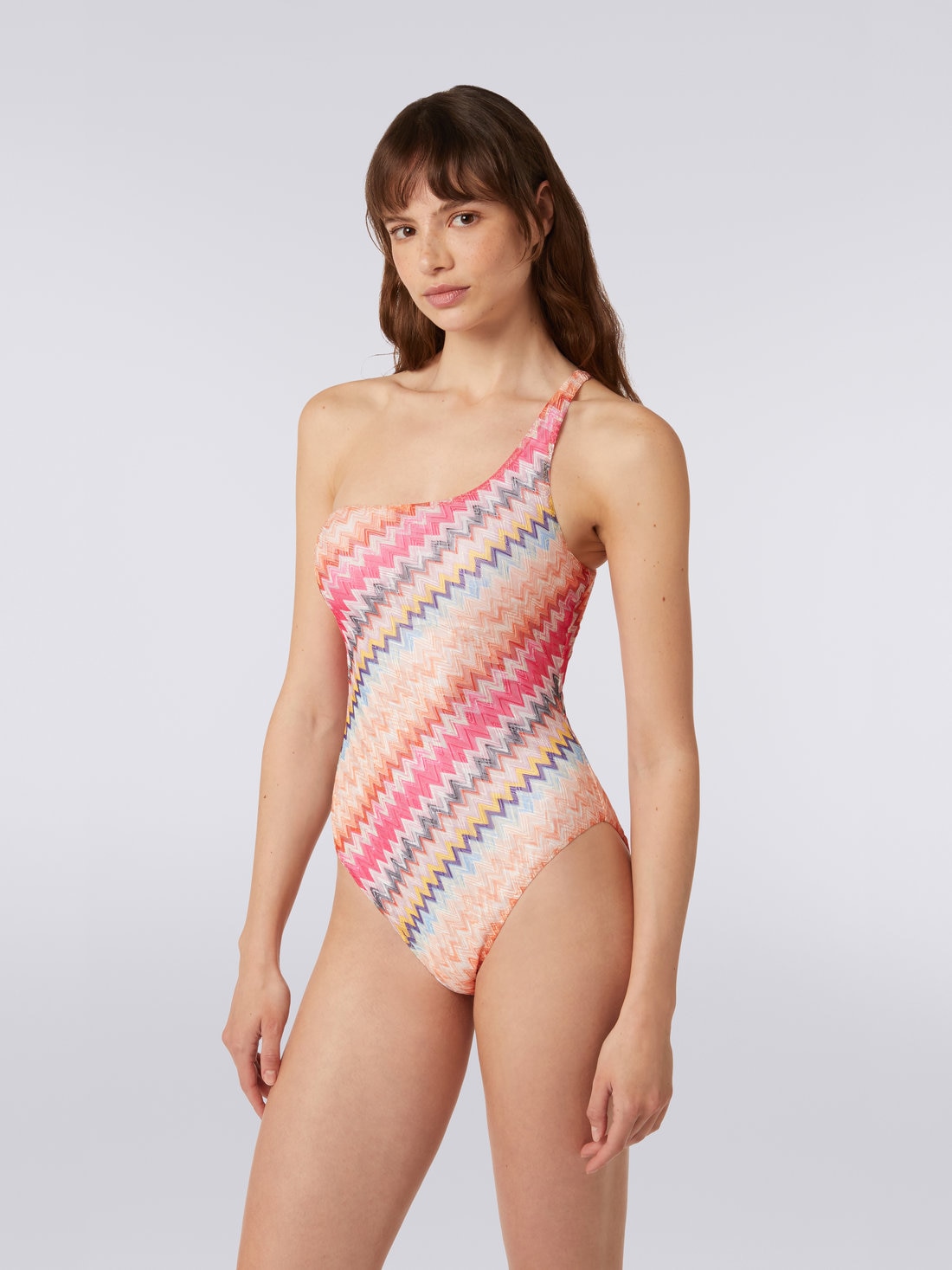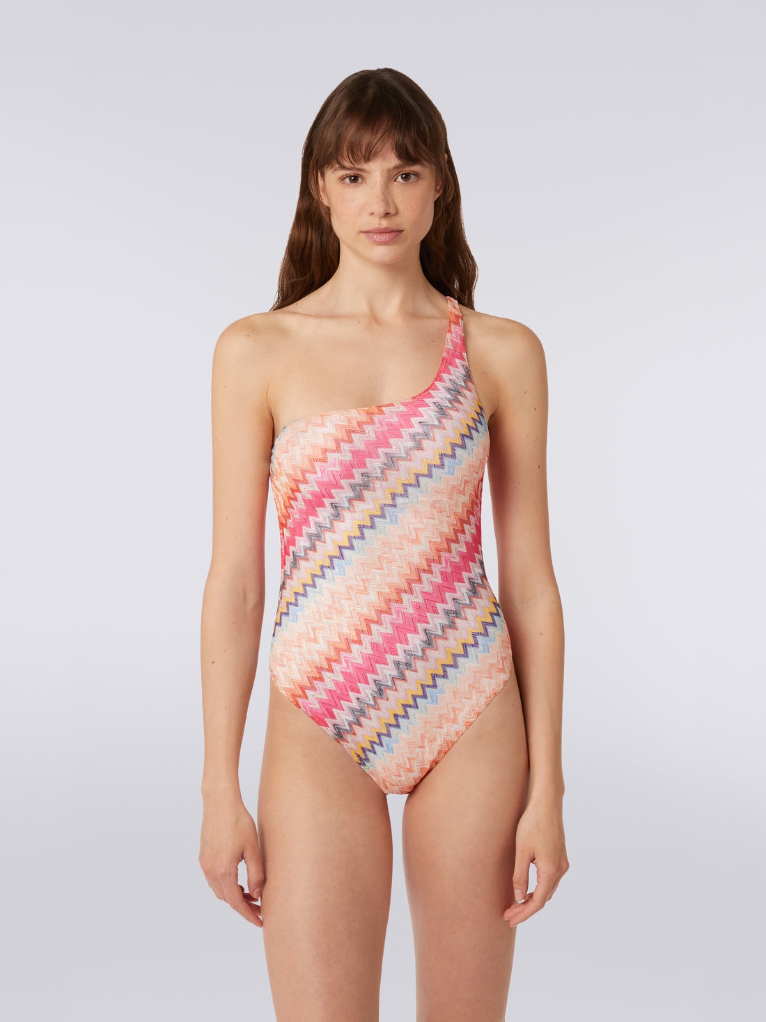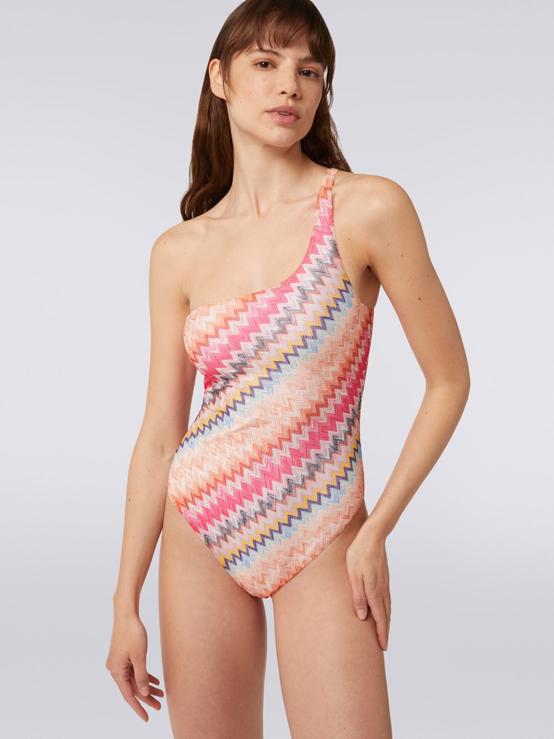 Einteiliger One-Shoulder-Badeanzug aus Viskose mit Chevronmuster