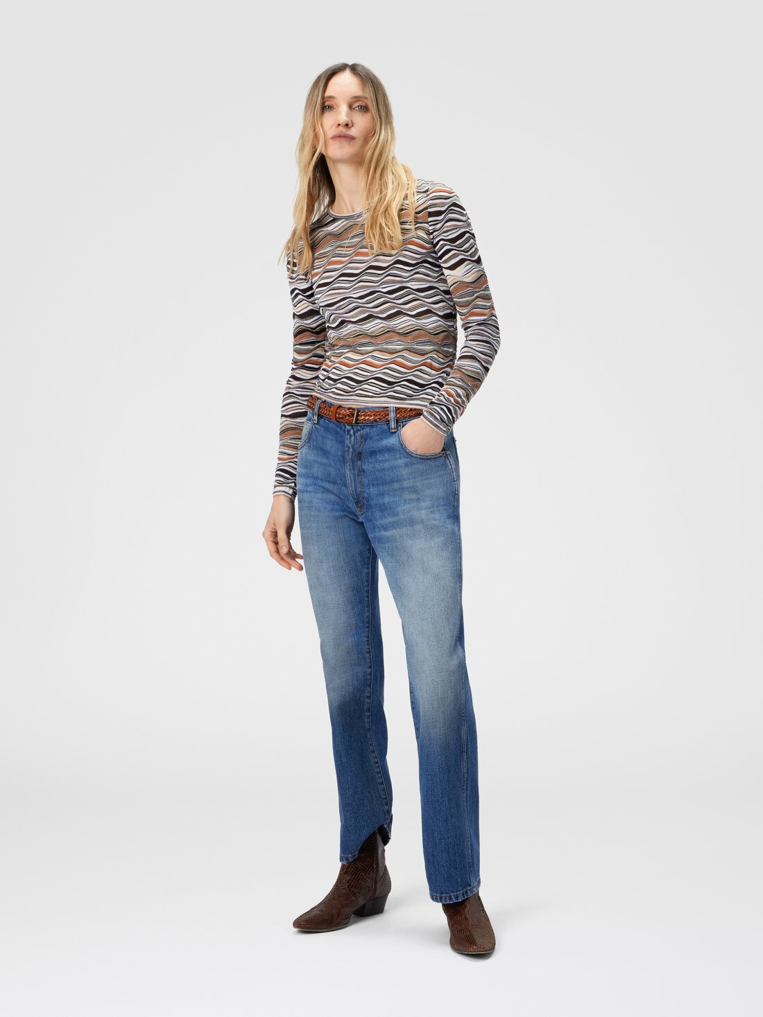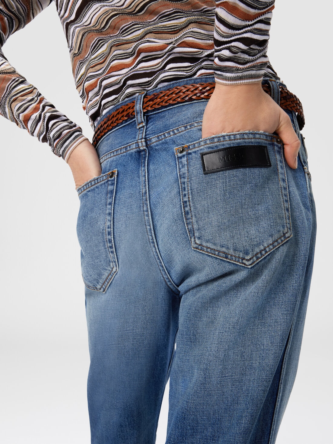 Diese Five-Pocket-Hose für Damen mit mittlerer Leibhöhe ist Ausdruck der ikonischen Schneiderkunst von Missoni. In Baumwolle gefertigt, vereint sie klassische Authentizität mit moderner Raffinesse für ein zeitloses Modell mit markanter Persönlichkeit.
