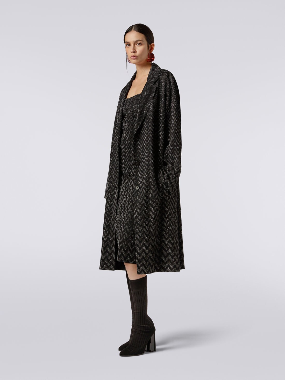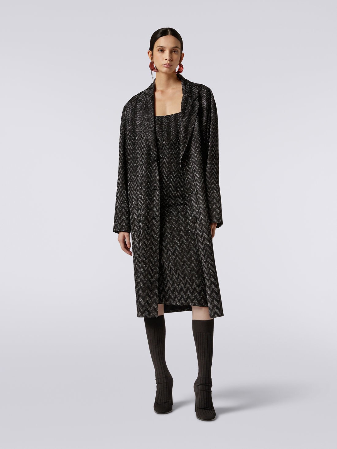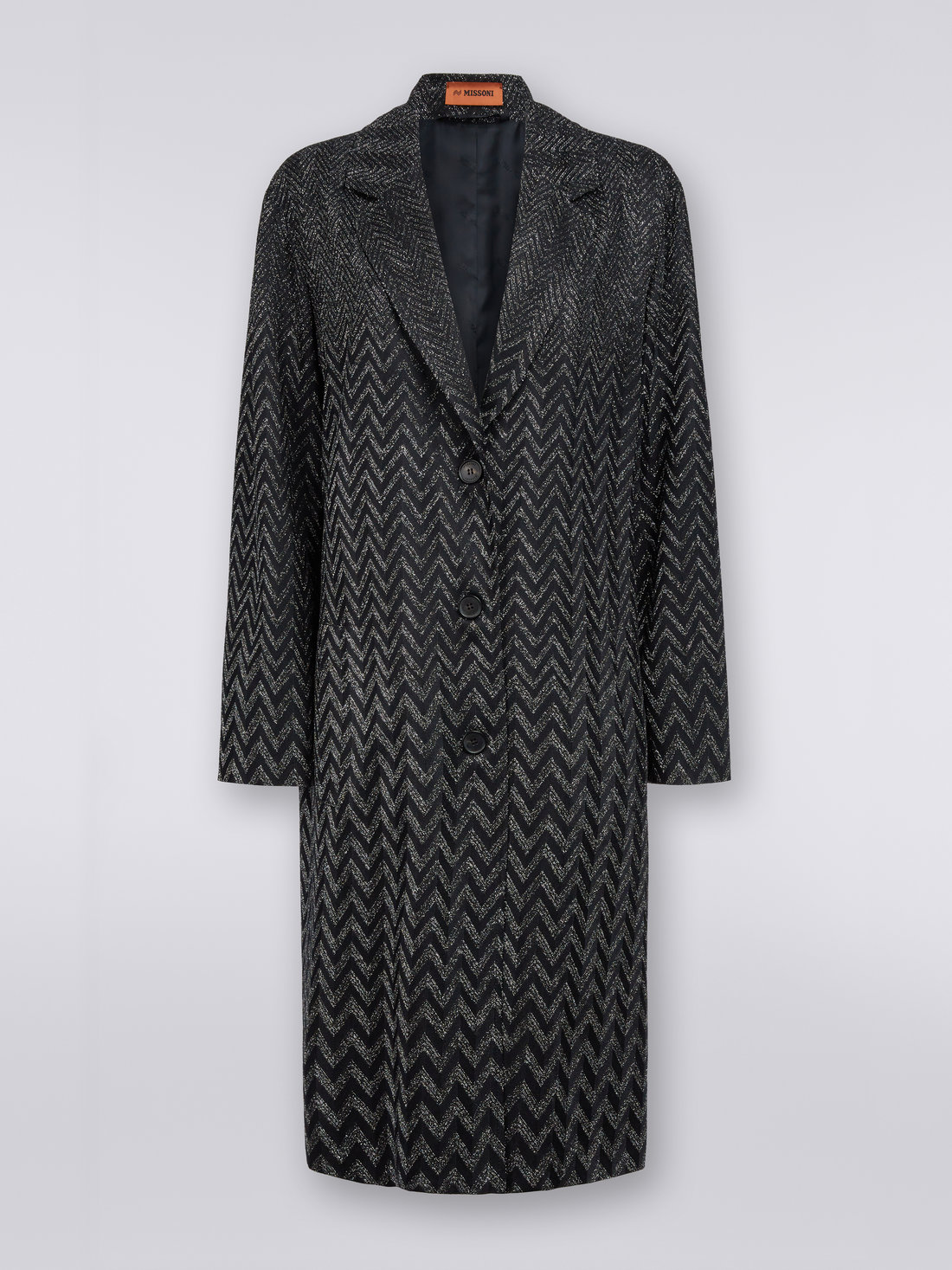 Der einreihige Damenmantel ist ein Must-have der Wintergarderobe. Missoni fertigt eine Version aus Viskose, die vollständig mit Dégradé-Zickzacklinien durchzogen ist und durch glitzernde Lurexfäden erhellt wird.