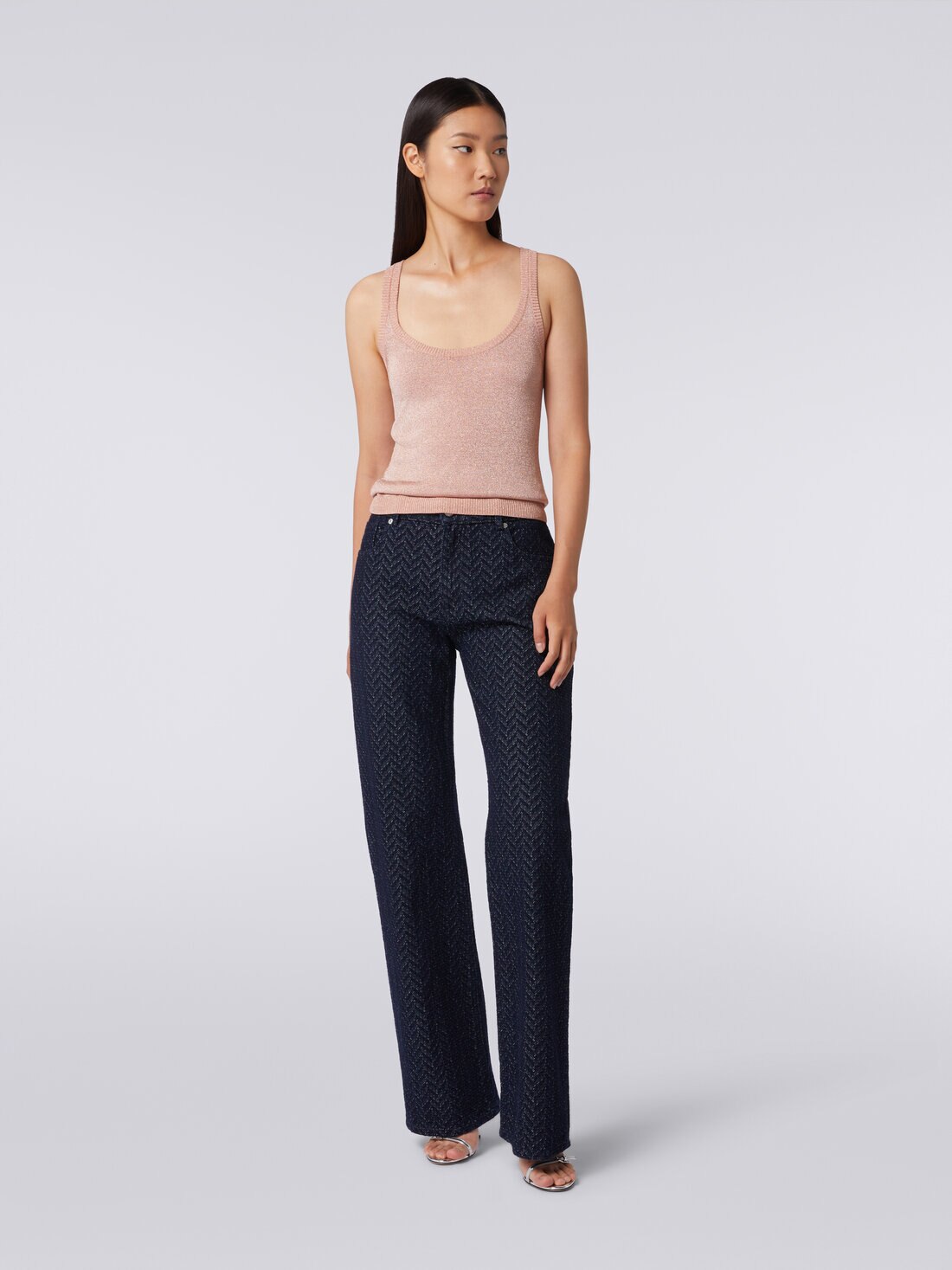 Das mit Lurex veredelte Tanktop für Damen aus Mischviskose zeichnet sich durch die edle Vanisé-Verarbeitung aus. Ein großzügiger V-Ausschnitt und Bündchen in Rippenstrick vervollständigen den Final-Look.