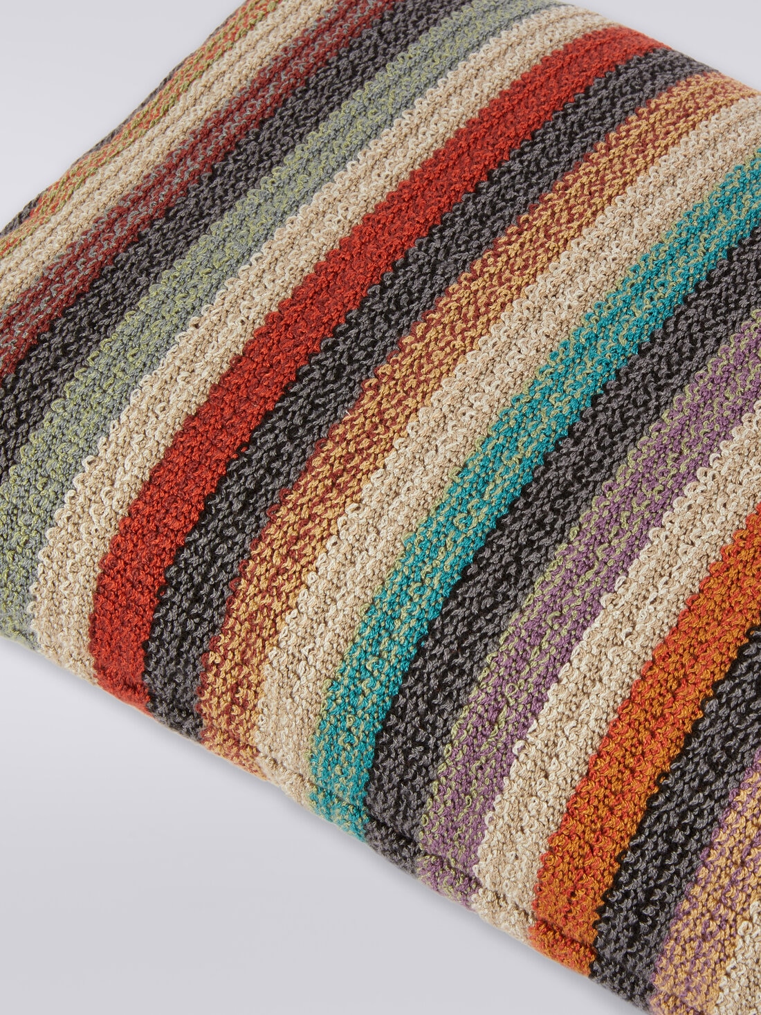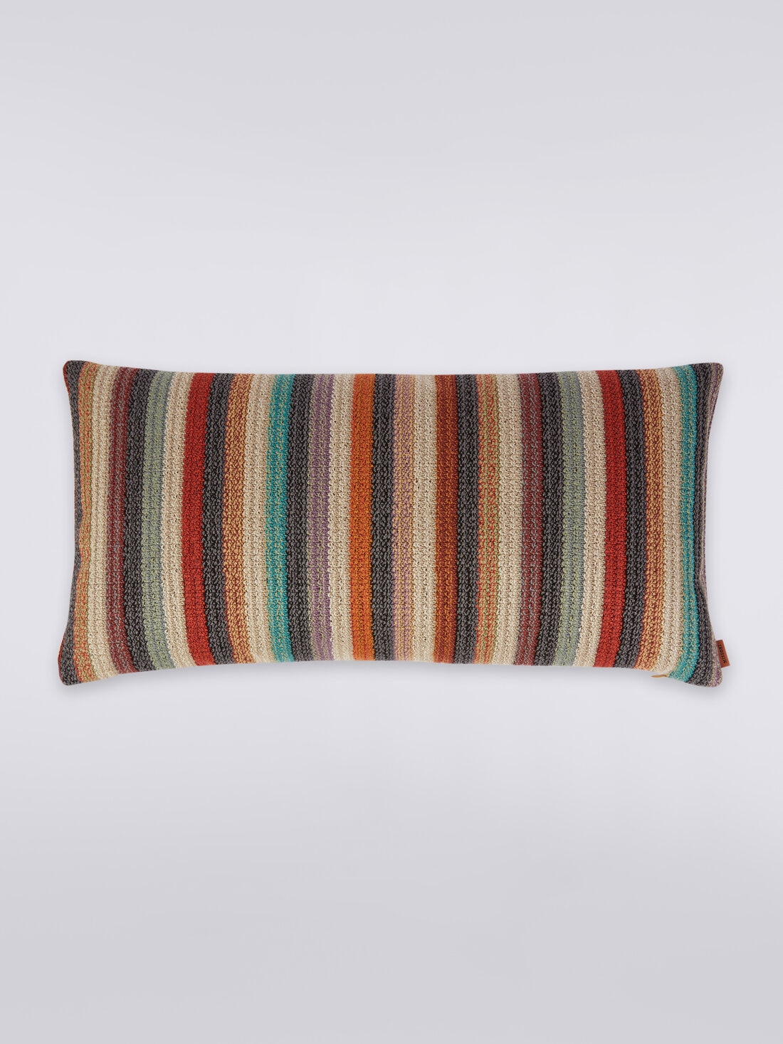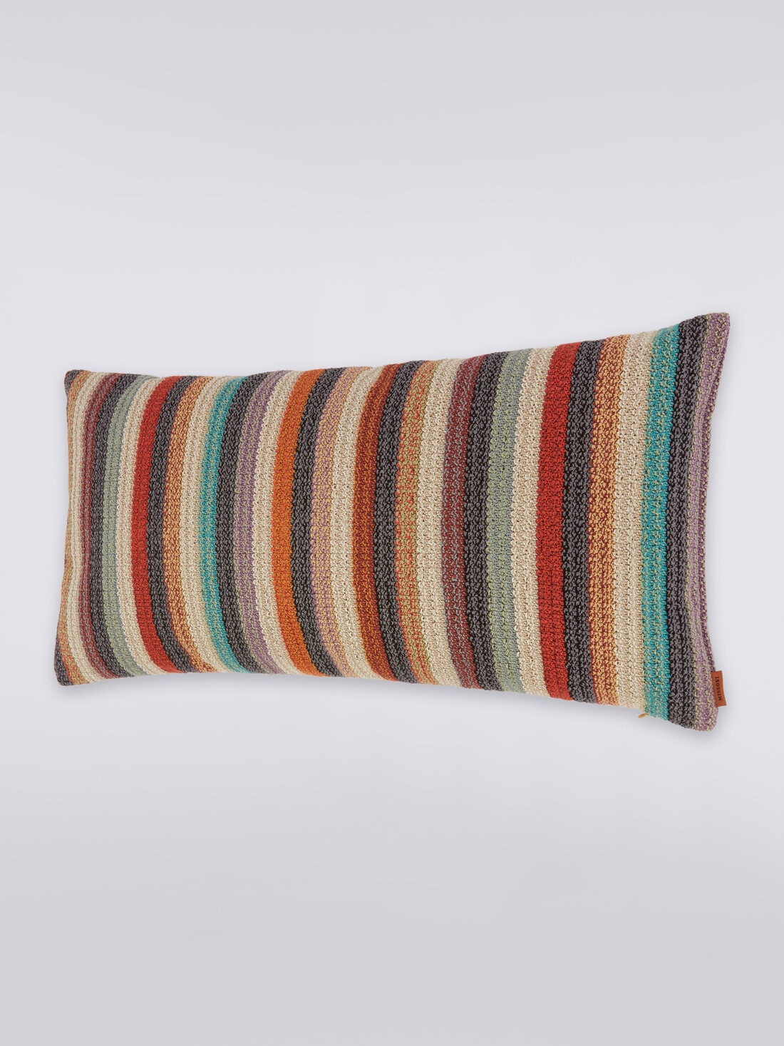Ein Melange-Streifenmuster, in der das mit einem Material-Effekt verarbeitete, grob wirkende Viskosegarn am besten zur Geltung kommt, für das rechteckige Kissen Vanuatu 30x60 cm. Das perfekte Ergänzungselement, um jedem Raum einen farbenfrohen Hauch Persönlichkeit zu verleihen.