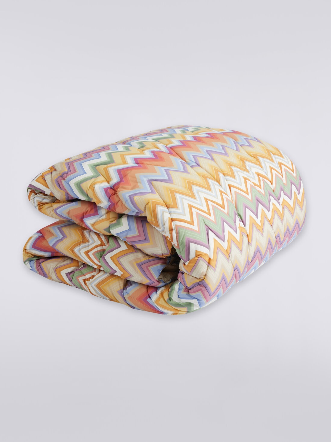 Timeless elegance takes shape in the Andres Re-Edition quilt. With its 260x270 cm dimensions, this padded cotton piece enhances the iconic Missoni zigzag pattern, reinterpreted in a vibrant and sophisticated color palette. Chevron stitching adds depth and texture, turning the bed into an oasis of comfort and style. Perfect for those seeking a distinctive and refined touch in their bedroom.