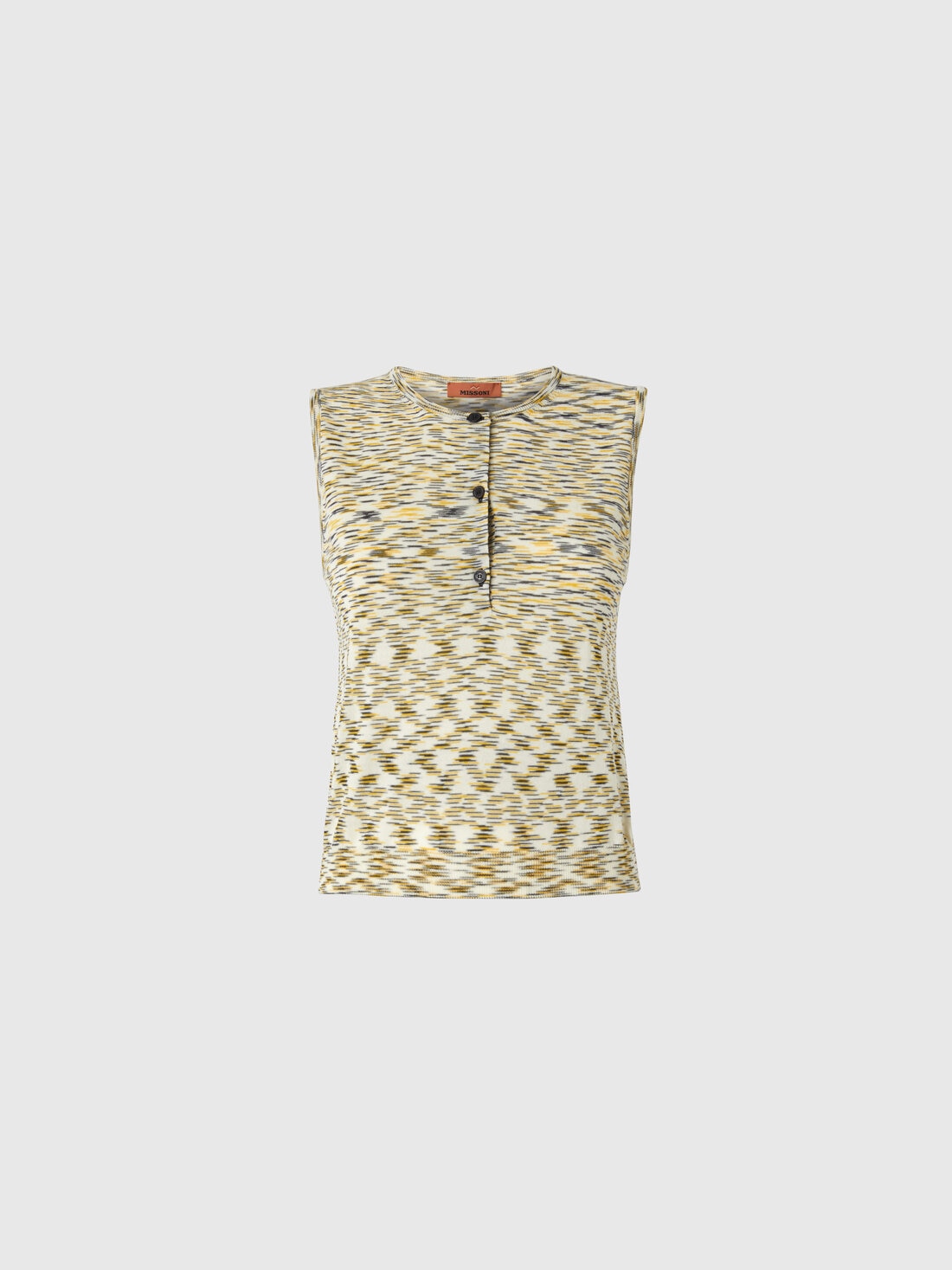 Women’s serafino vest with buttons, made from slubbed smooth wool blend knit, giving the garment a rich and vibrant texture. Essential yet detailed, it is perfect to complete a look with a touch of sober elegance and contemporary taste.