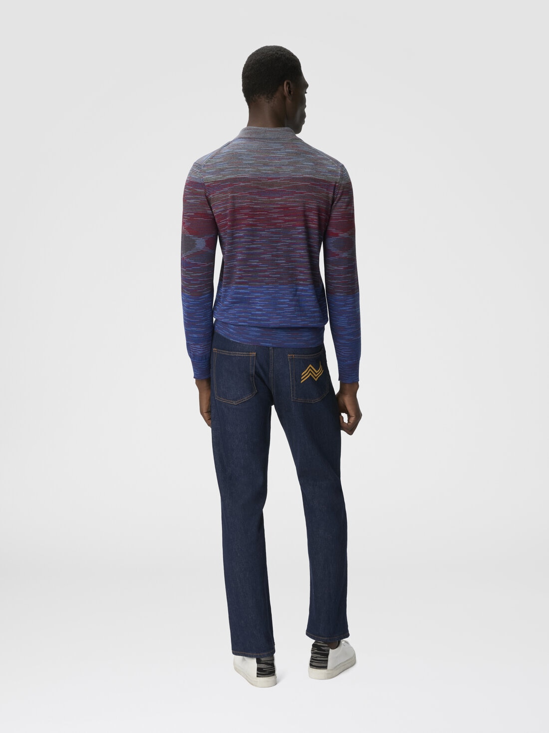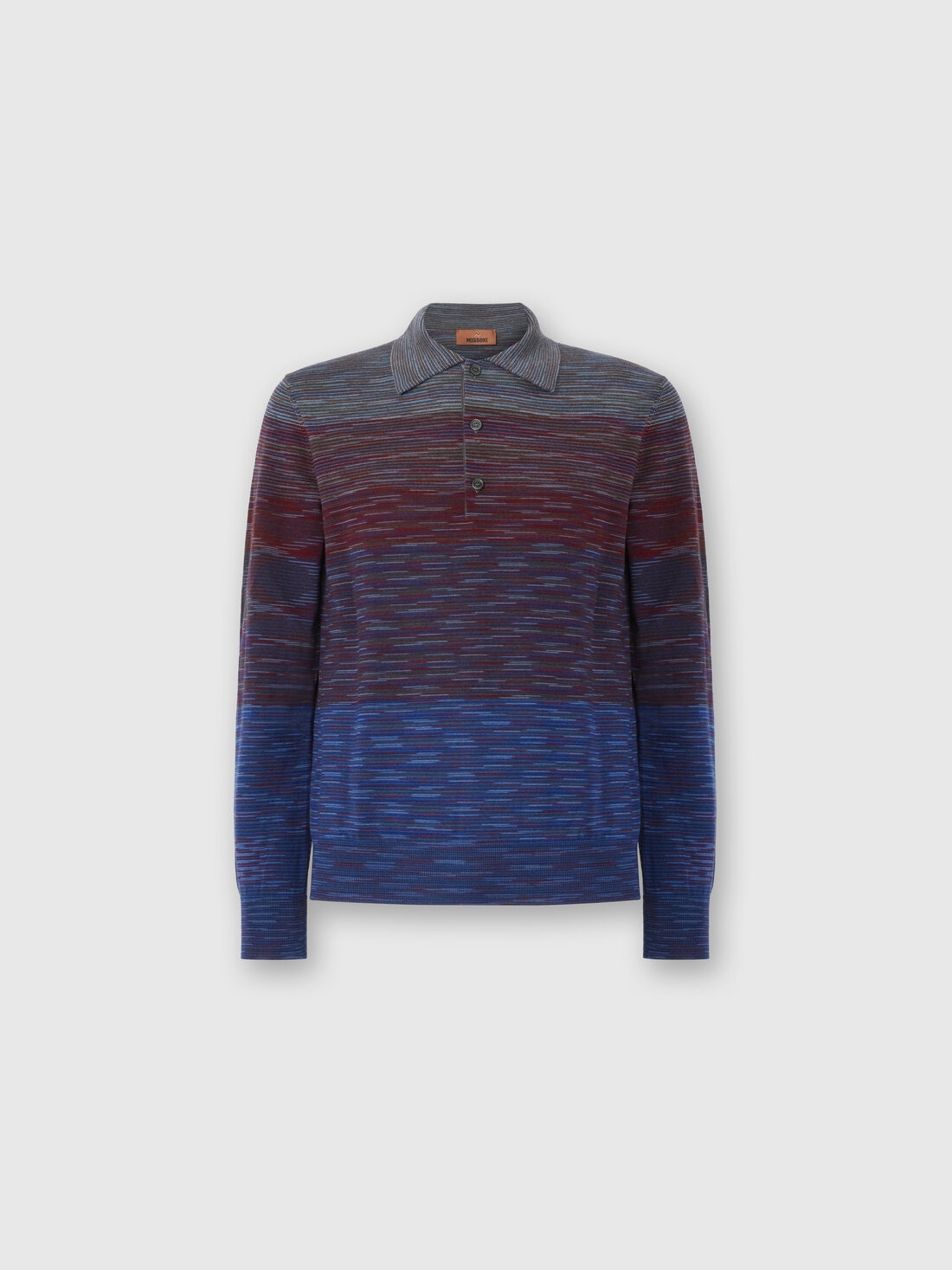 Long sleeve polo in pure wool with flame pattern