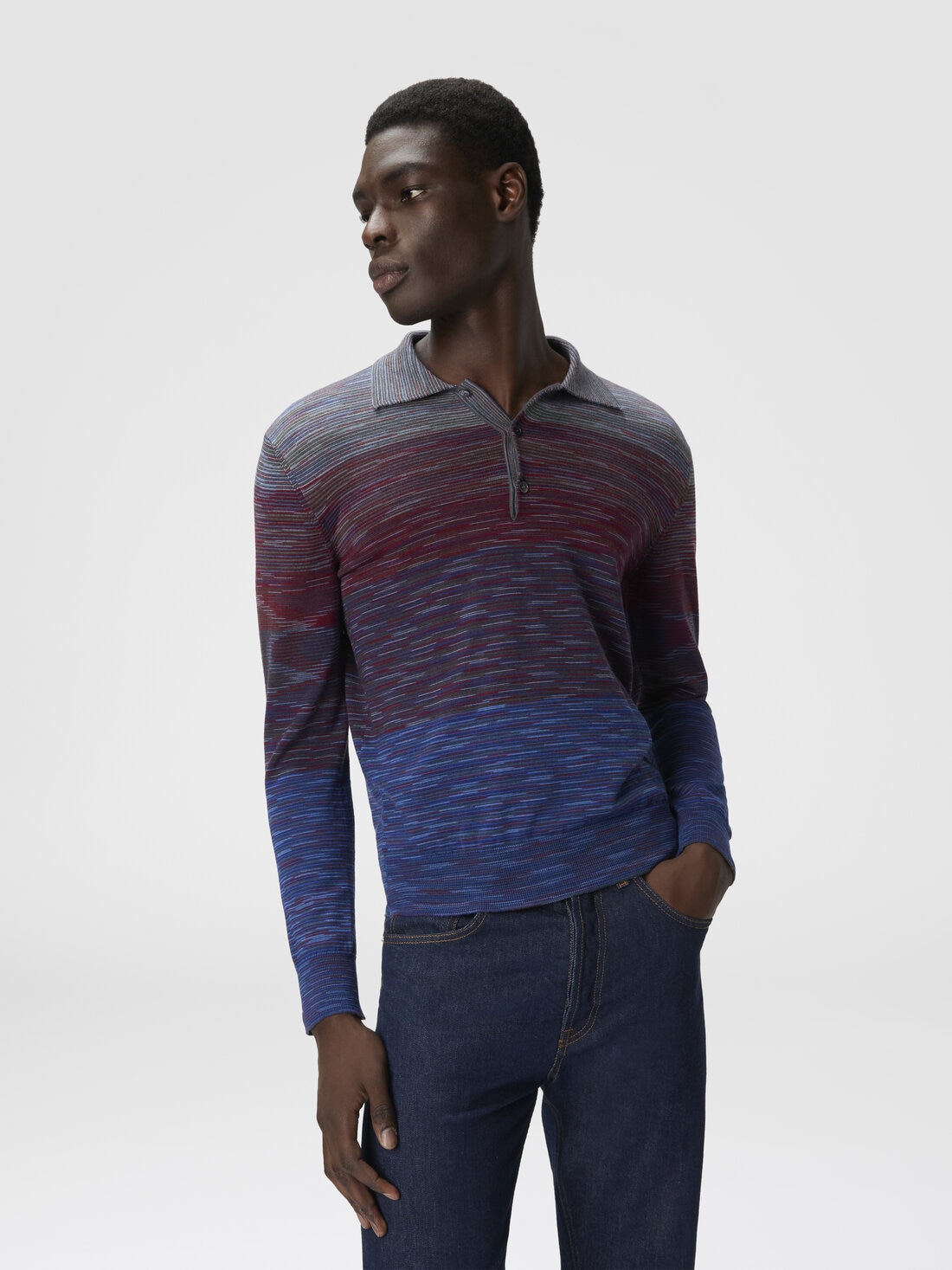 The classic men’s polo is renewed with a striped motif on slubbed wool, creating a garment that merges tradition and contemporary style. The richly textured workmanship enhances the simplicity of the design for a look that’s both sophisticated and relaxed.