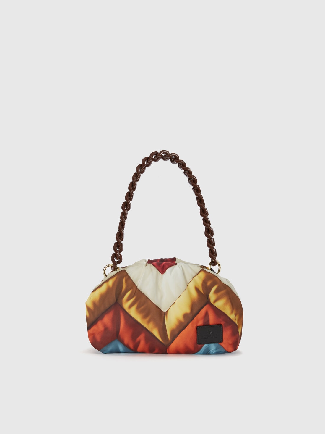 Half-moon shape and soft zigzag fabric for this women's clutch by Missoni. Enriched by the removable resin shoulder strap, the bag features a logo patch that highlights its pop character.