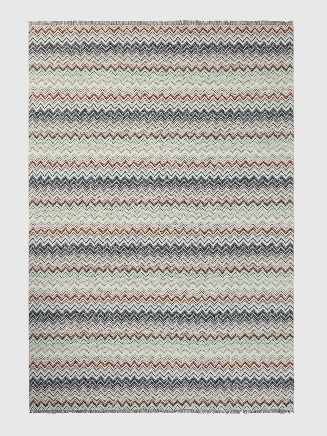 The 130x195 cm cotton-wool blend plaid blanket is made of a refined blend of materials, enriched with a hint of cashmere for an extra touch of softness. Characterised by the chevron pattern, the blanket is further embellished by the fringed edges, which add a touch of elegance and sophistication.