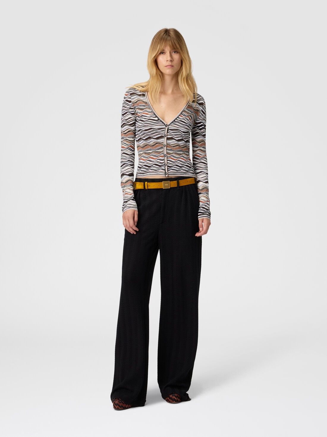 Buttoned cardigan with wave pattern