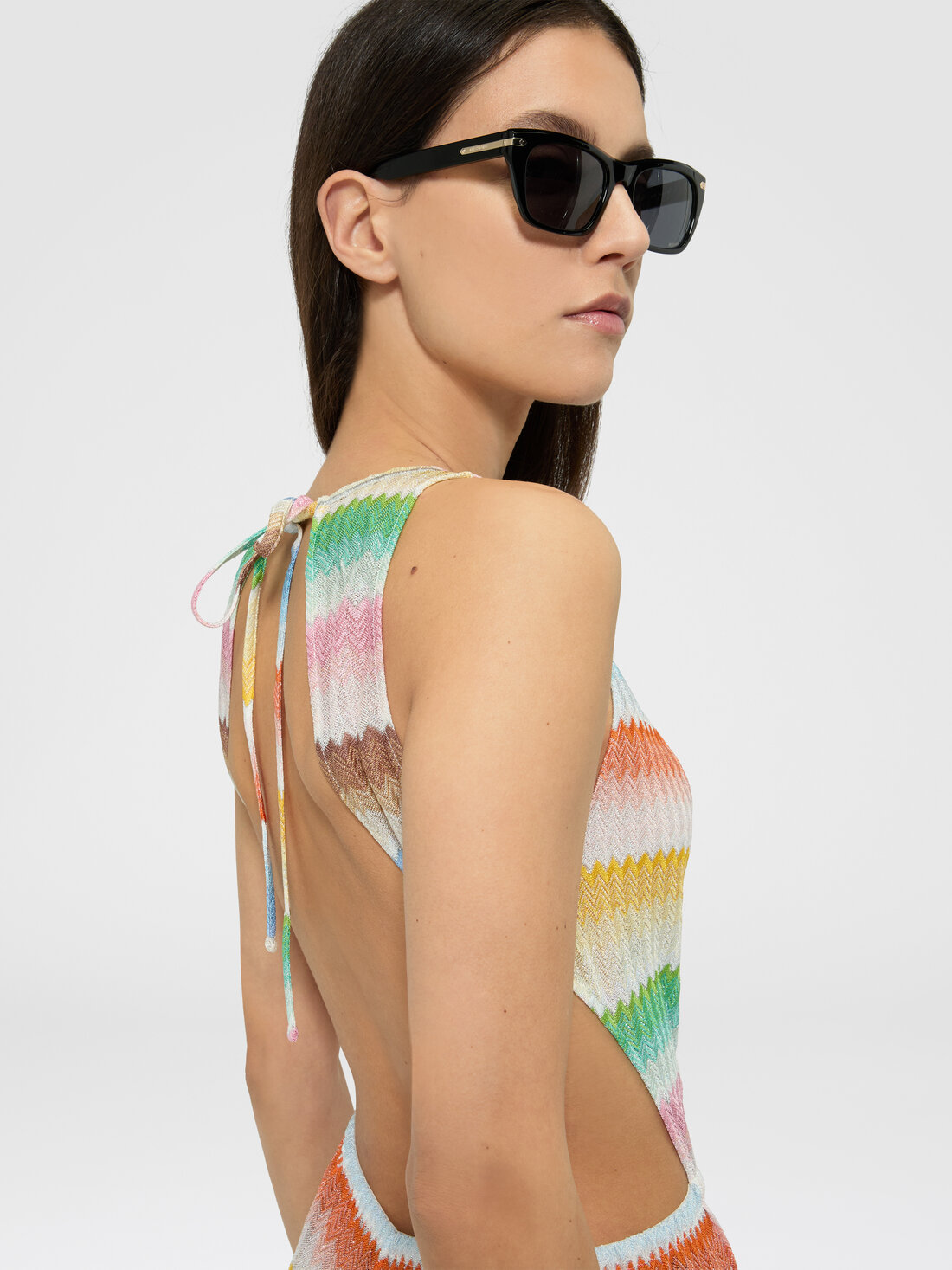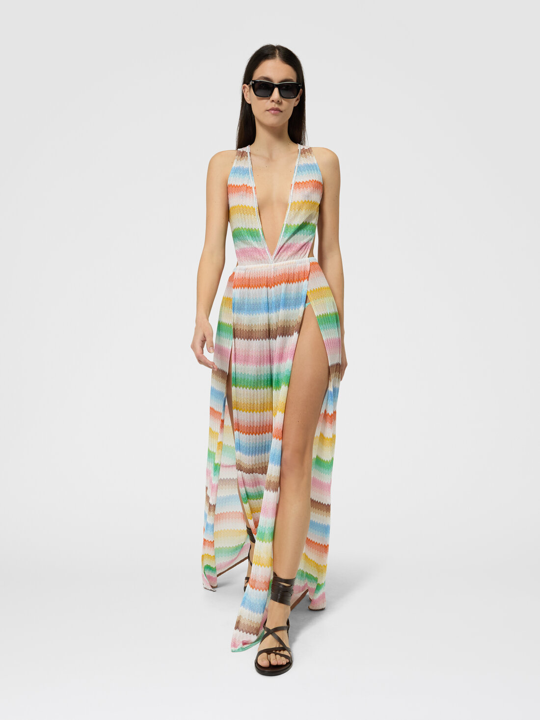 Long jumpsuit with dégradé zigzag pattern and slits