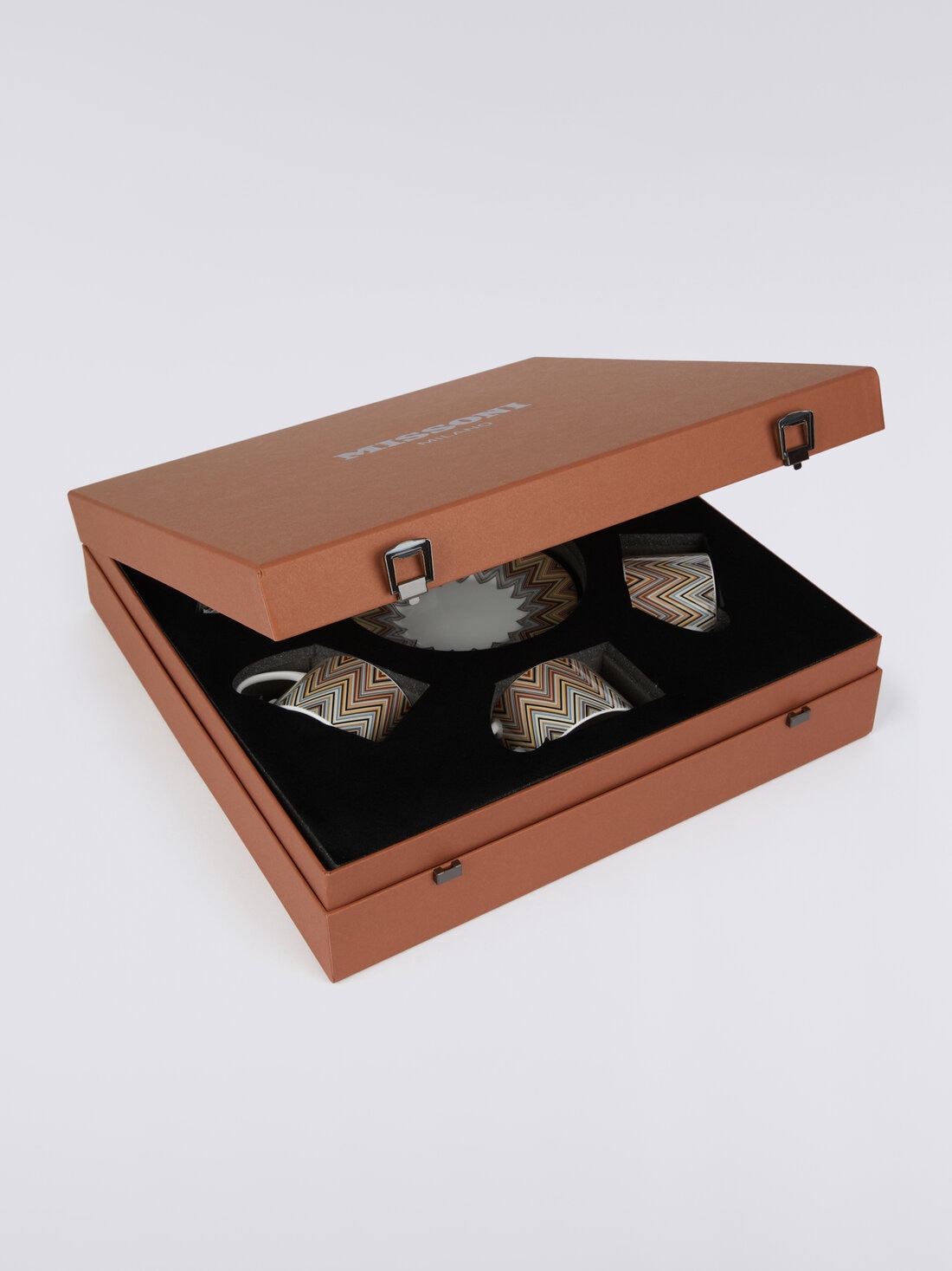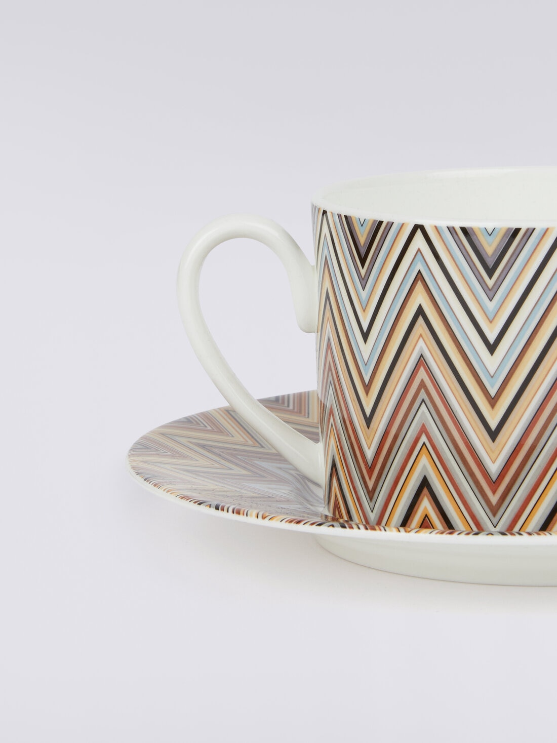 Opening the Missoni logo gift box to reveal a set of six teacups and saucers is a delightful surprise that will brighten up any occasion. Enhanced by the zigzag Jarris pattern, this set will add a touch of colour and cheerfulness to your table.