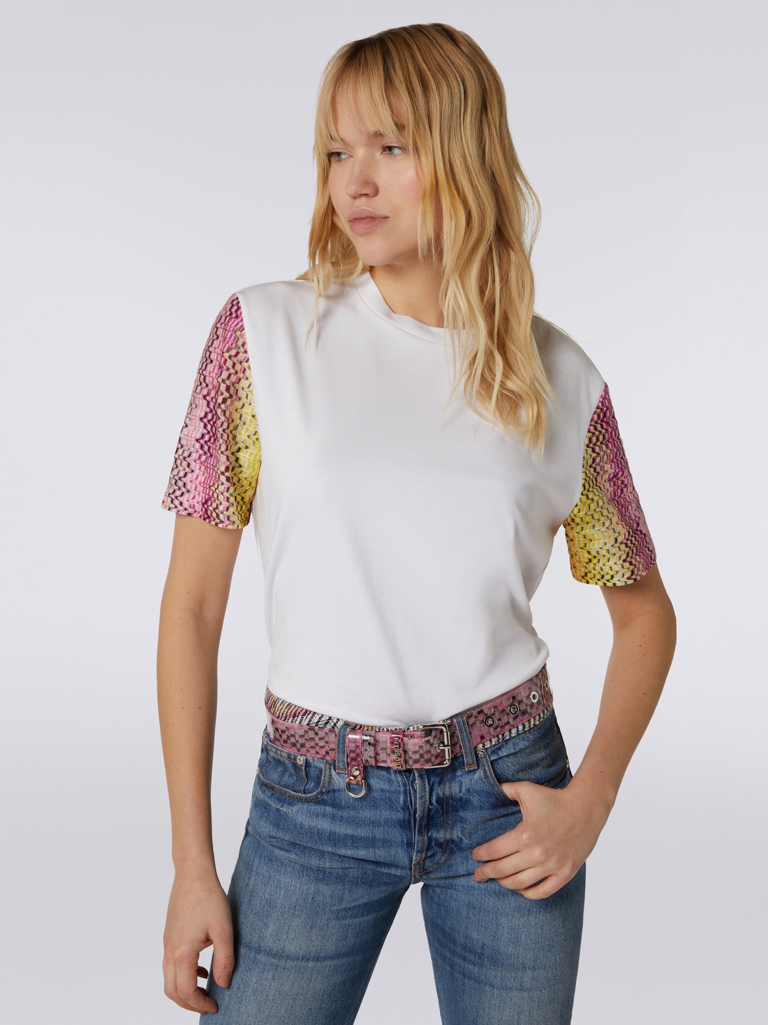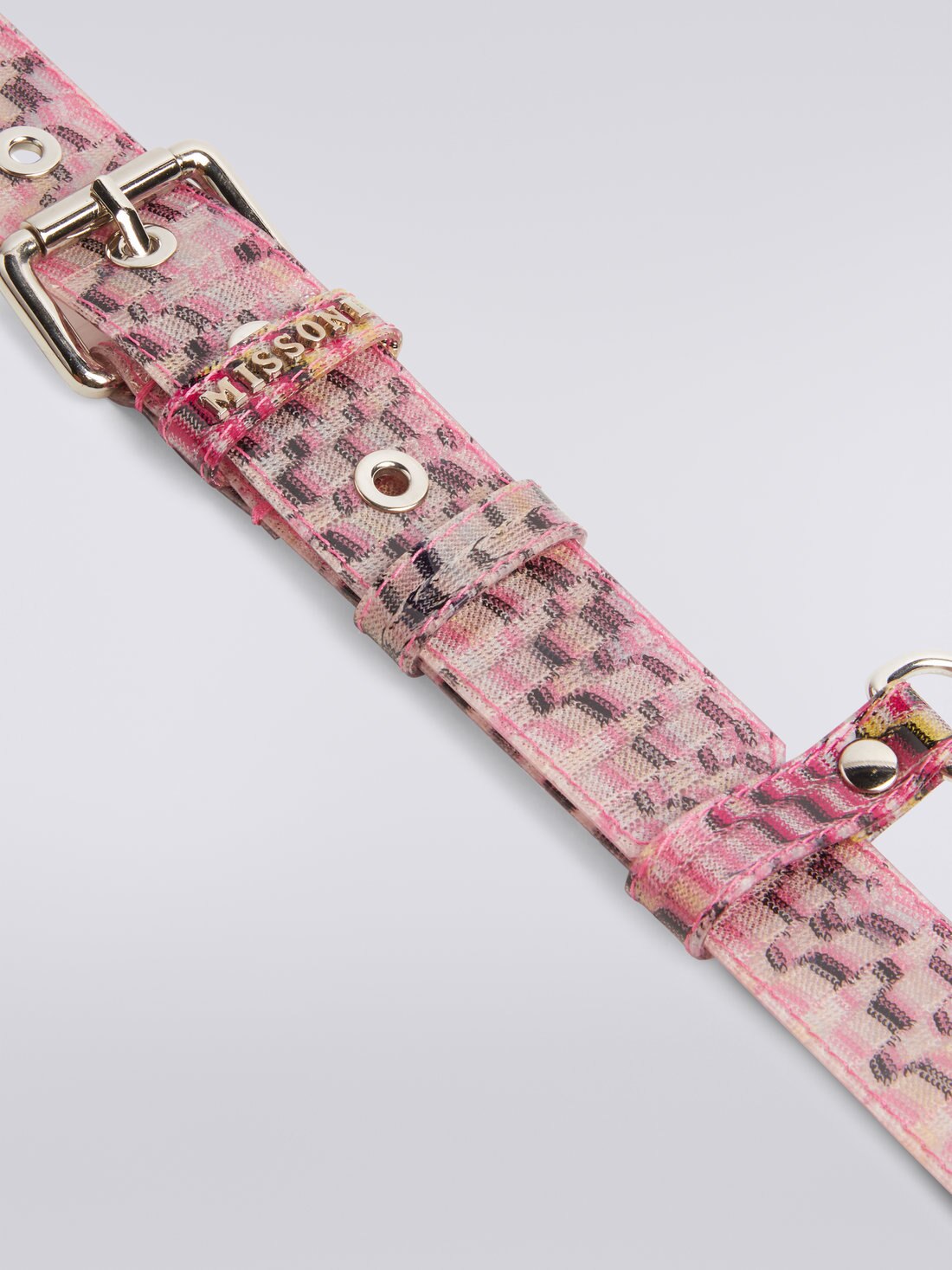 No five-pocket look is complete without an accessory to add a decorative touch. The women’s belt designed by Missoni, made of viscose-coated PVC, is topped off with a multicoloured Greek fret motif and personalised by the metal logo lettering on the belt loop.