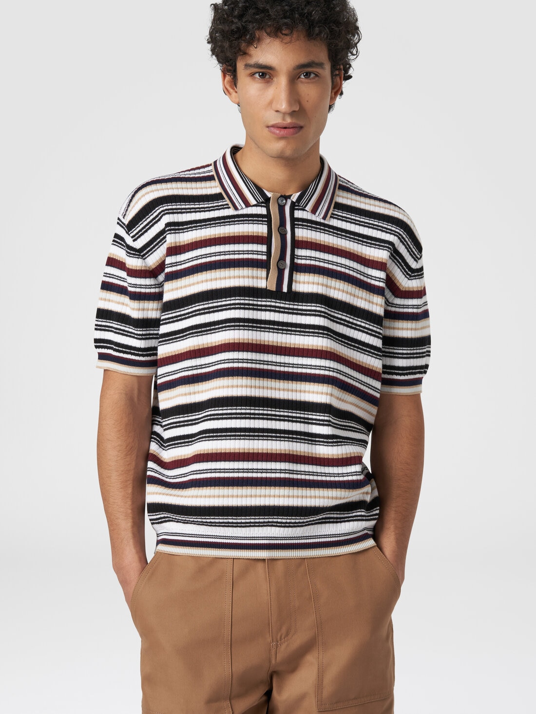 The recognisable horizontal stripe motif is used by Missoni to give a new twist to the classic men’s short-sleeved cotton polo shirt. The piece features a regular fit and three-button placket.