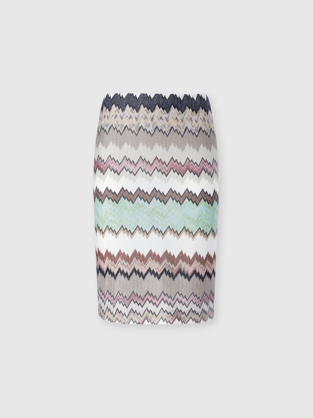 Women’s midi skirt in viscose lamé with a side slit, crafted with raschel workmanship and an irregular snake motif. A design that plays with reflections and textures, expressing Missoni’s sophisticated artisanal creativity.
