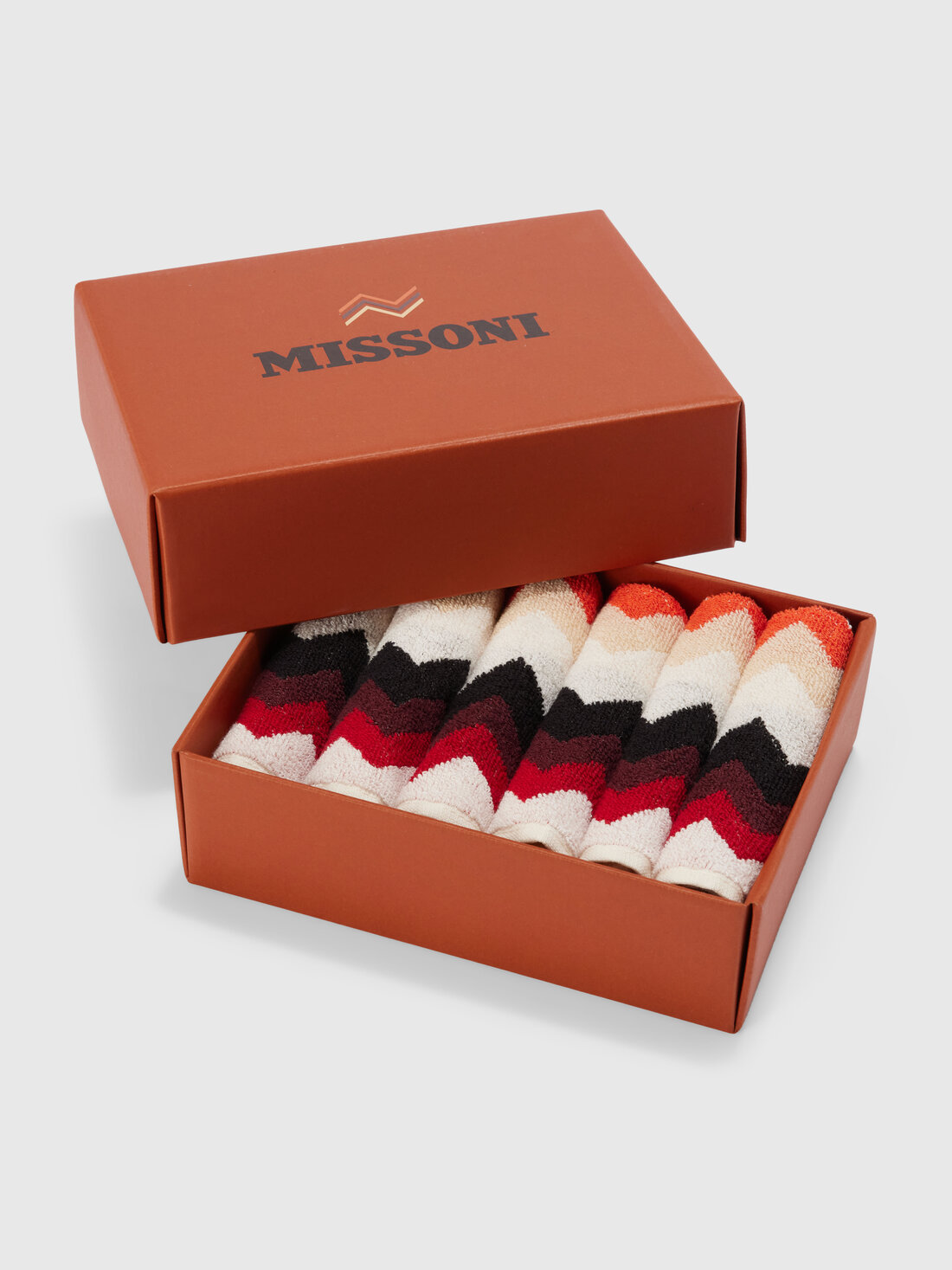 An everyday gesture becomes a refined detail with this set of cotton terry face towels, featuring the maison’s unmistakable zigzag motif. Soft and absorbent, they are presented in an elegant branded box, designed to complete the bathroom or as a sophisticated gift set.