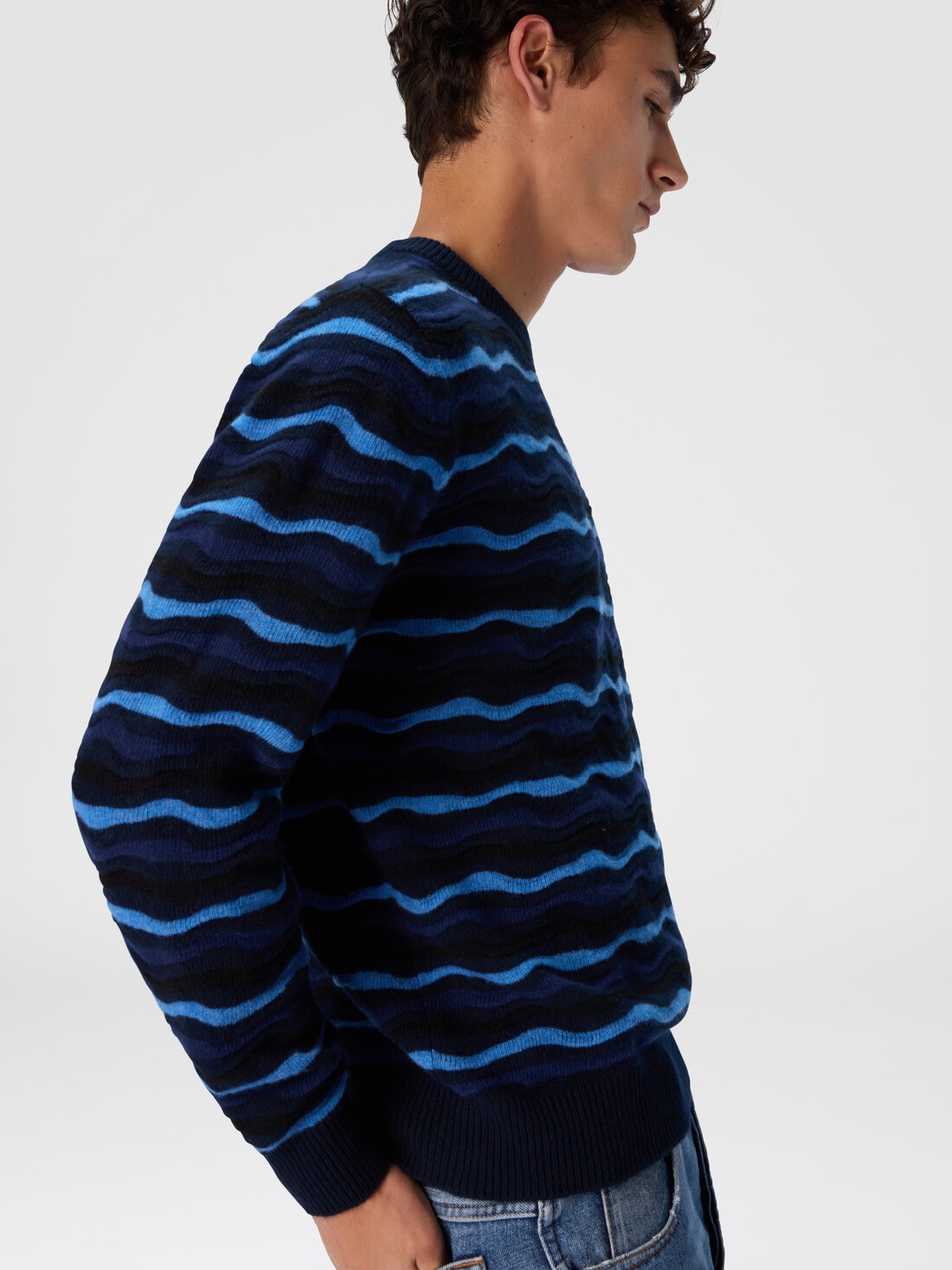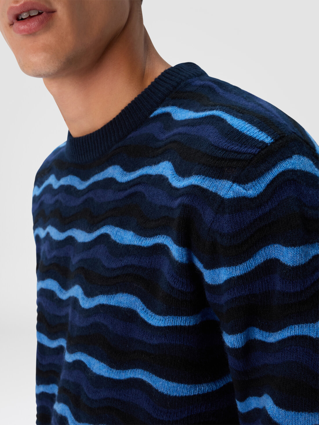 Crew neck sweater with wave pattern