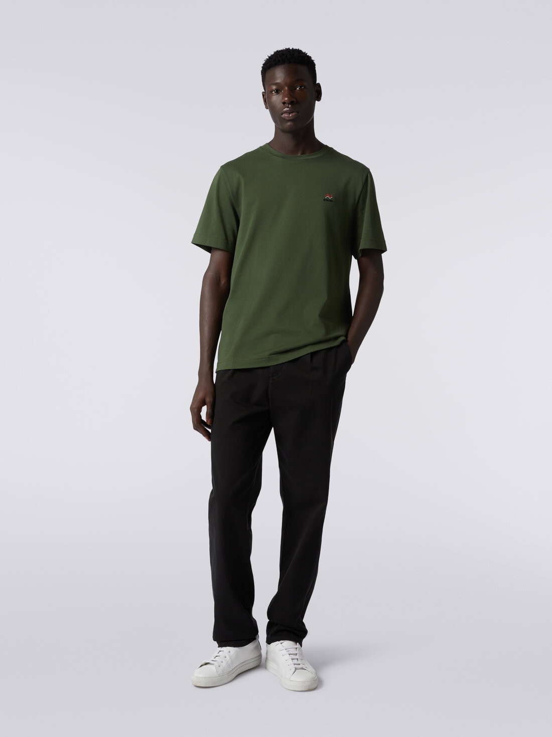 Classic men’s chino trousers in cotton gain a contemporary twist thanks to Missoni’s touch, transforming them into the perfect everyday look complement. Featuring a relaxed fit and a small contrasting embroidered monogram, they present pleats at the waist and practical side pockets.
