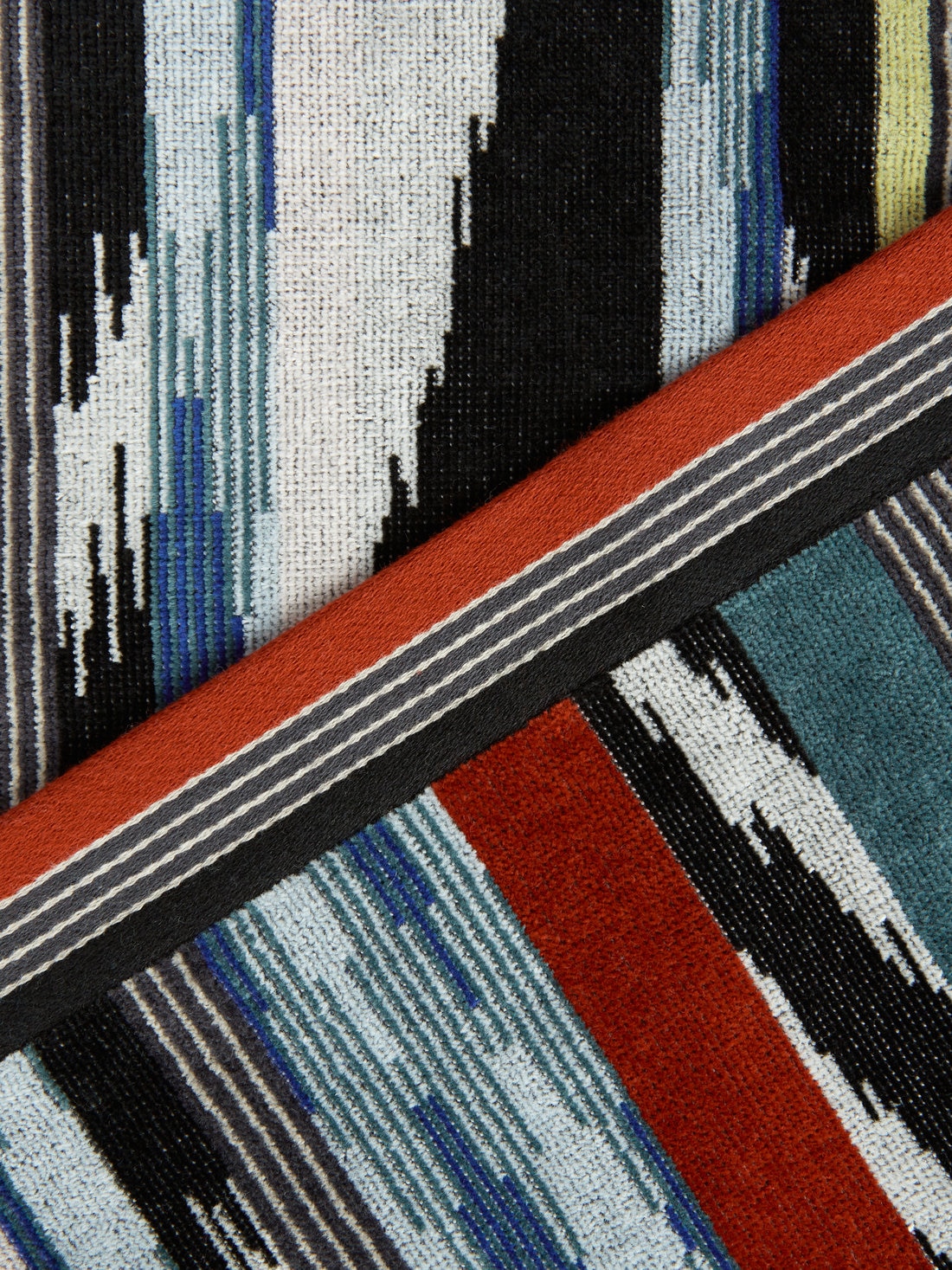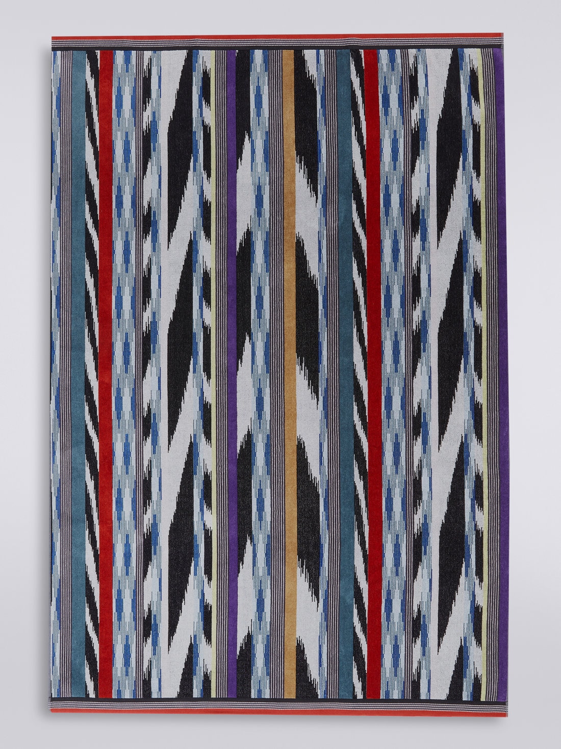 Made comfortable and enveloping by pure cotton terry, this bath towel is transformed into a furnishing fabric with unsuspected qualities under the skilful Missoni touch. It will add a touch of refined exclusivity to the most intimate room in your home, making an instantly recognisable statement.