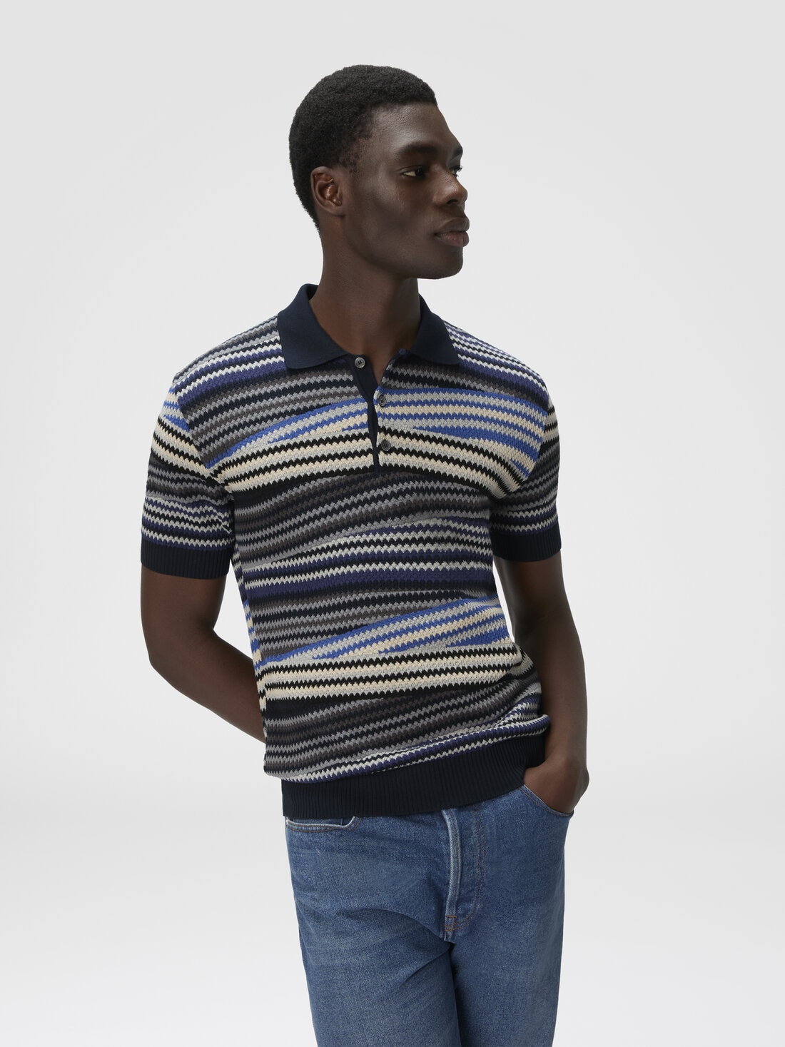 The iconic Missoni zigzag, reimagined, animates this short-sleeve men’s button polo made of cotton. Its striped workmanship provides a distinctive and modern feel, blending Missoni’s timeless elegance with a practical, contemporary design.