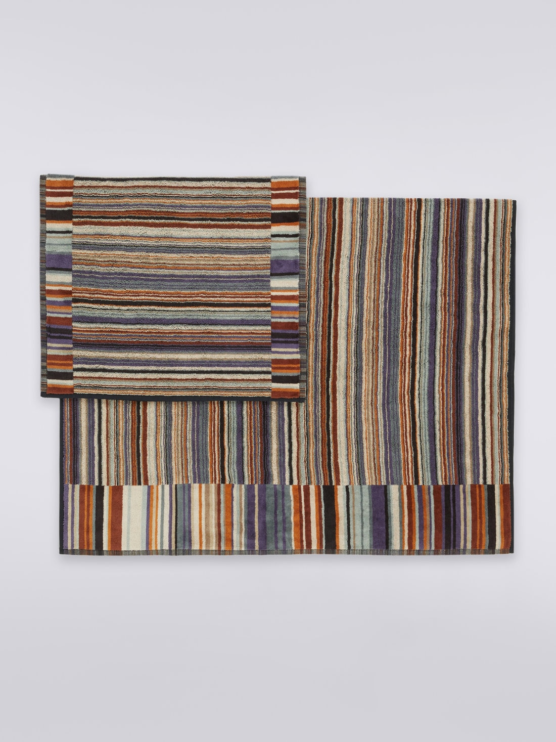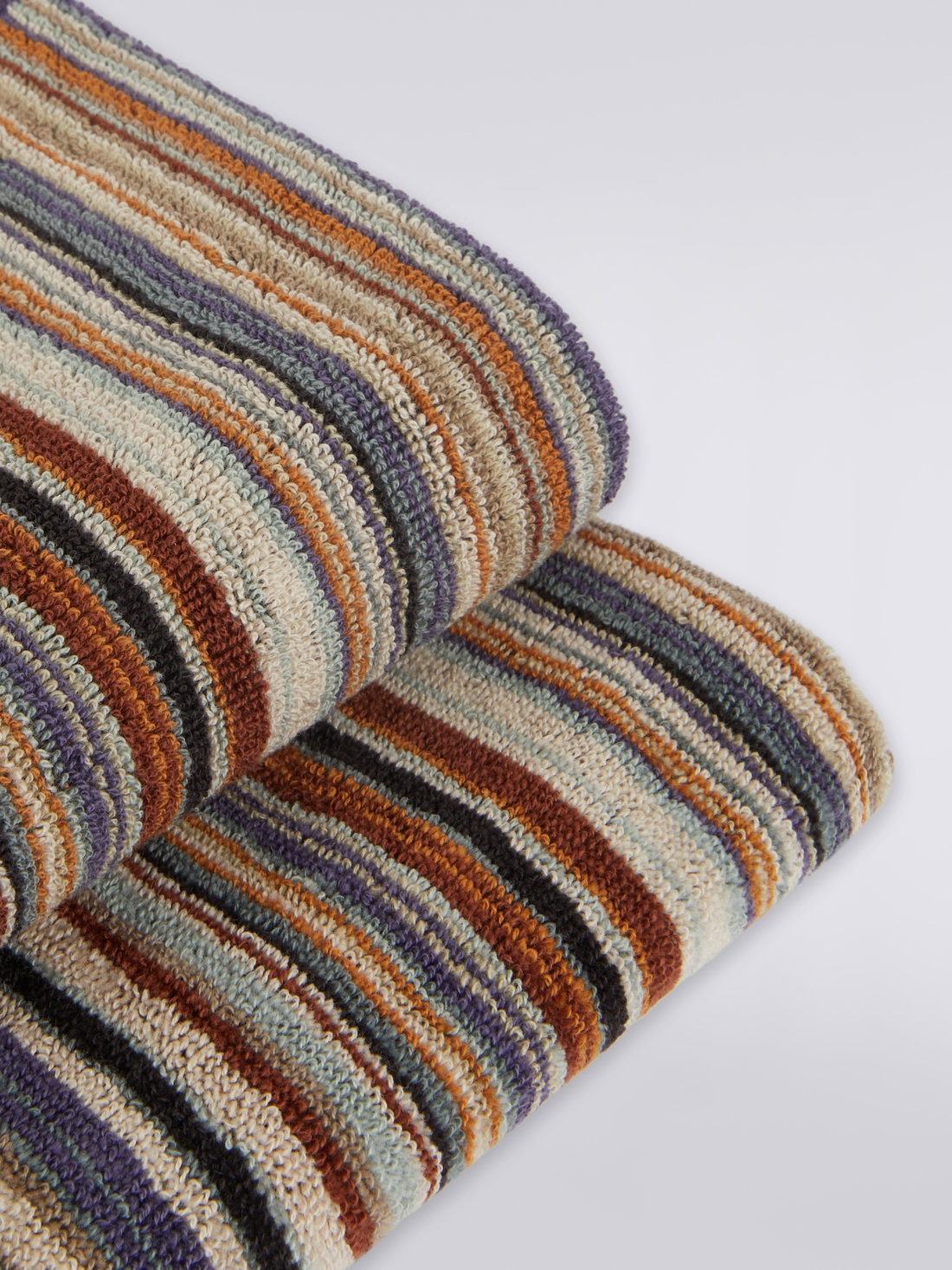 The hypnotic, almost musical rhythm of the vertical stripes, emphasised by the different thicknesses of the trim, characterises the Jazz 2-piece towel set. MissoniHome mixes geometric designs and refined colour variations to give the bathroom an unmistakable flare.