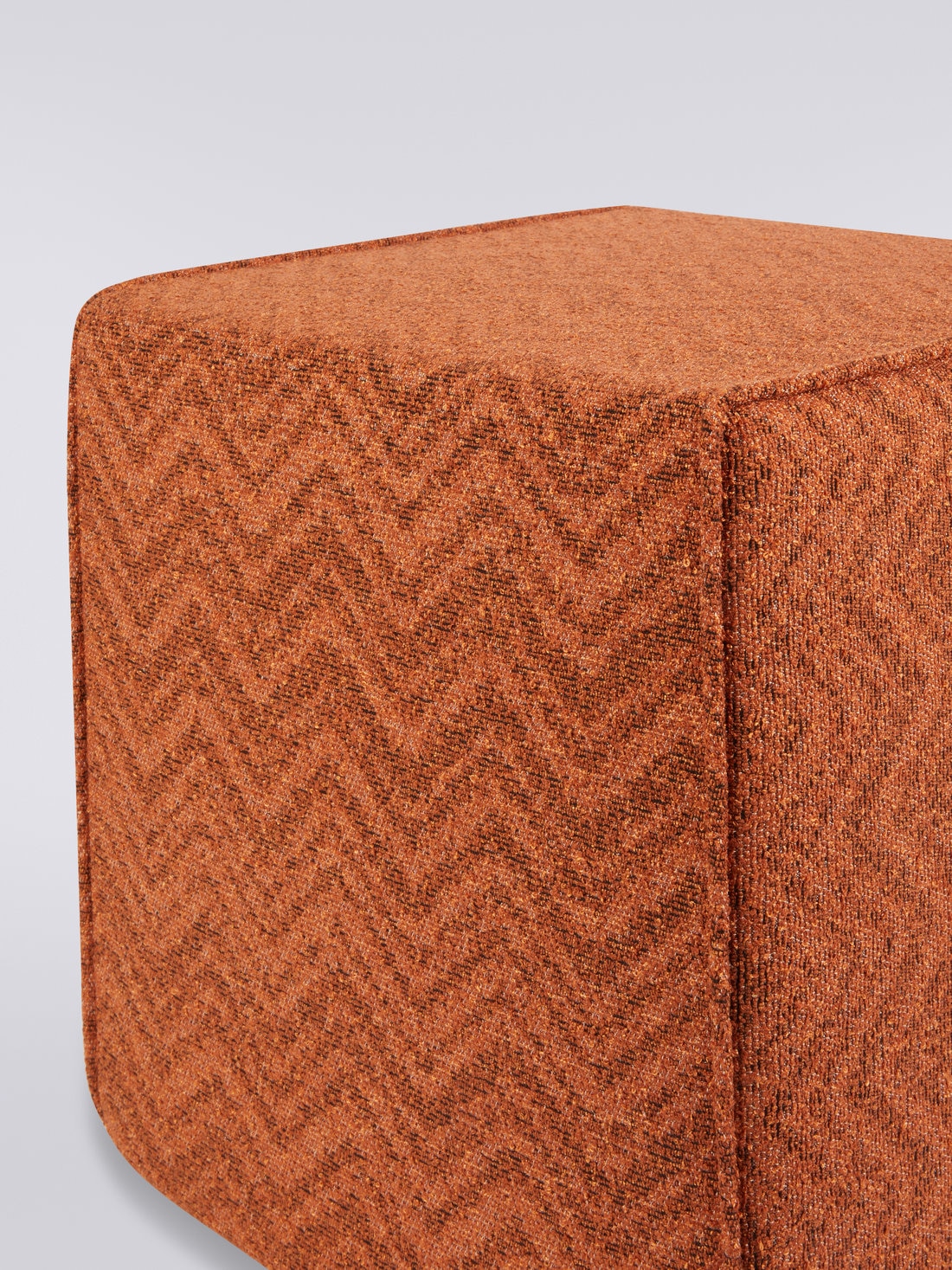 With its distinctive and refined character, the Columbia 40x40x40 cm cubic pouffe conveys timeless elegance. Made of a fireproof fabric and enriched with sophisticated jacquard knitwork, Columbia features an embossed chevron bouclé effect that adds depth to its cubic shape. It is a versatile and sophisticated addition to any space.