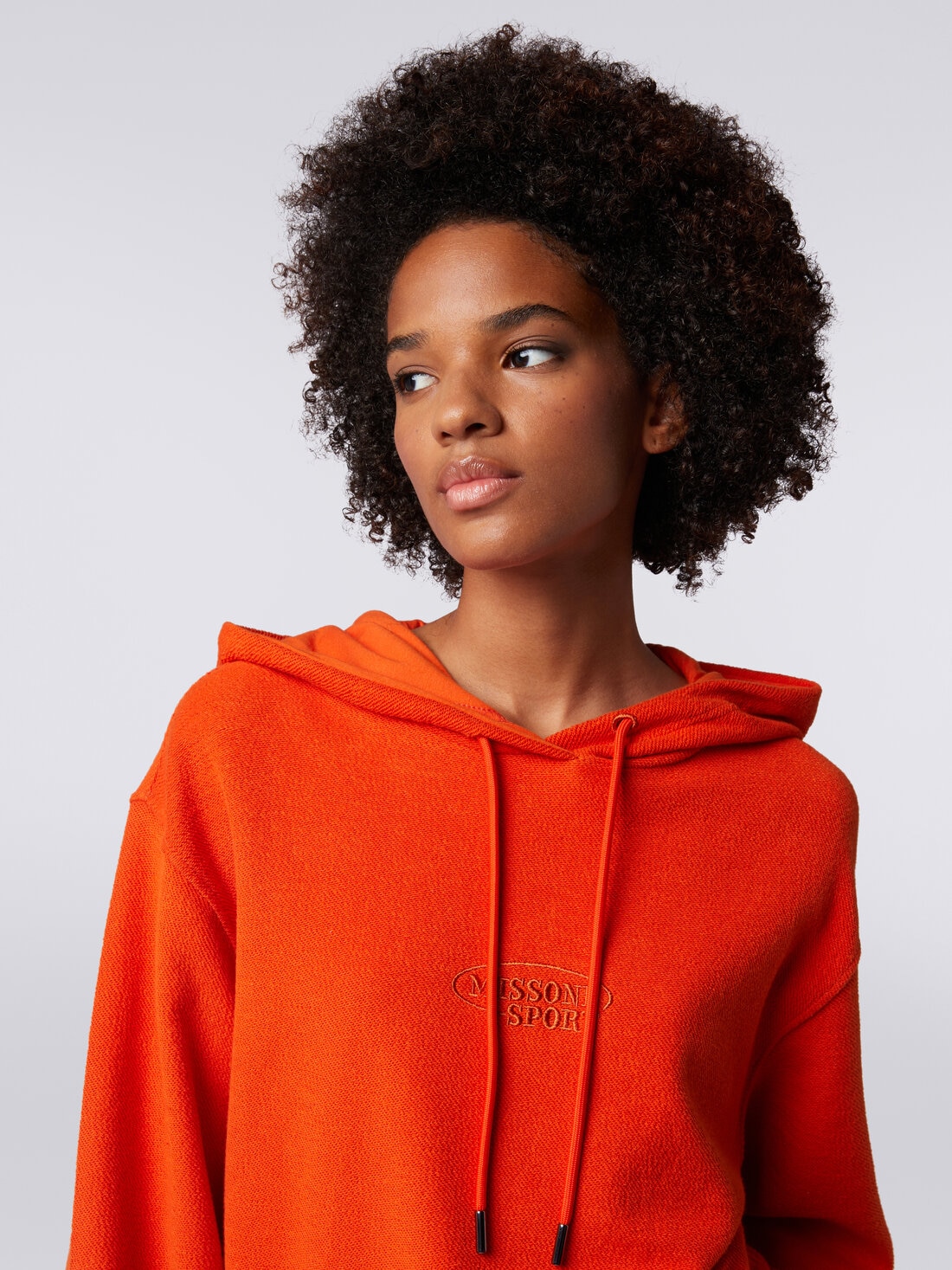 Slightly reduced proportions and normcore vibes for the women’s brushed cotton hoodie. The hooded sweatshirt with drawstring is customised by tone-on-tone embroidered logo lettering and finished with ribbed trim.