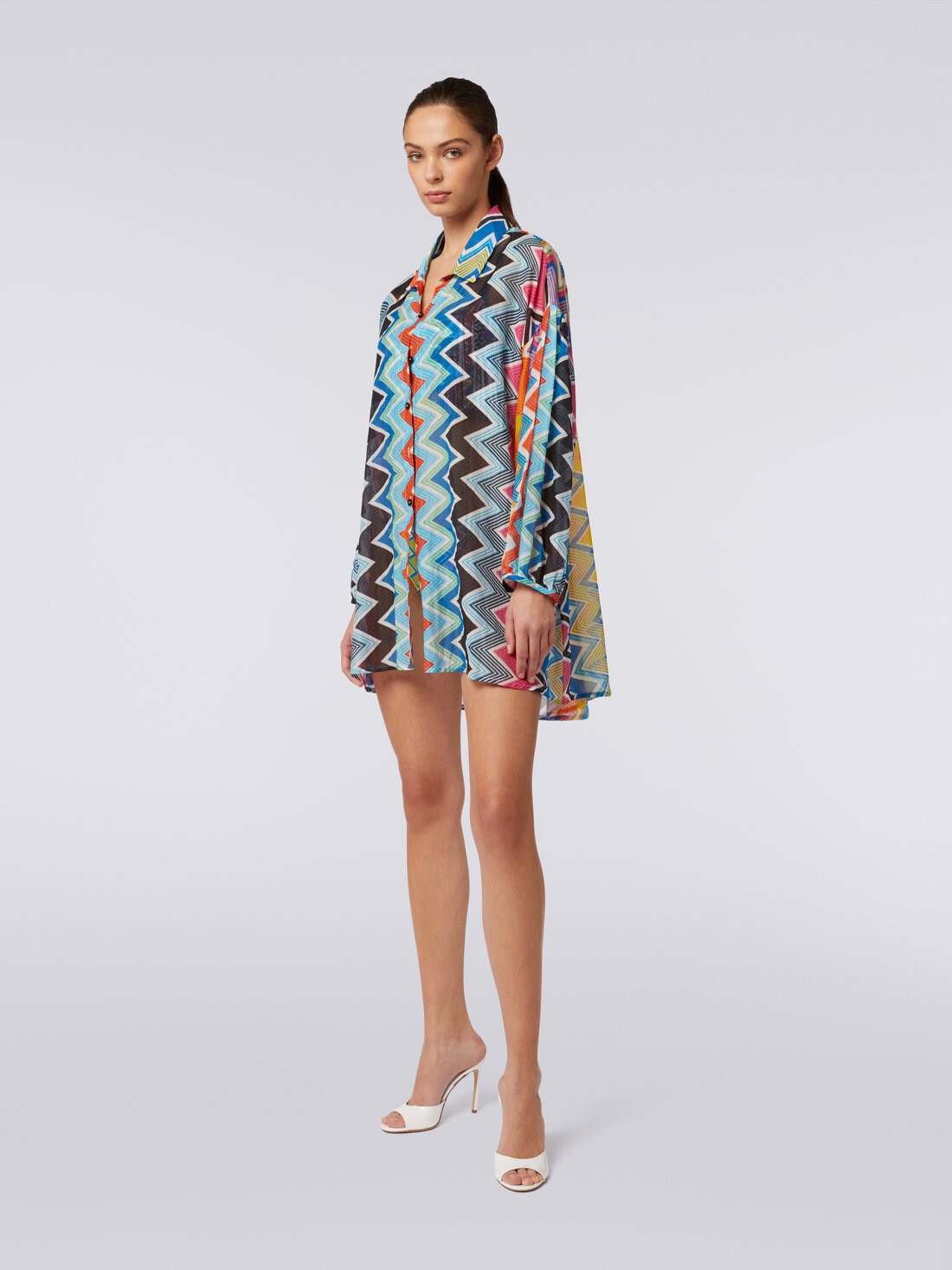 Silk and cotton oversize blouse with zigzag print