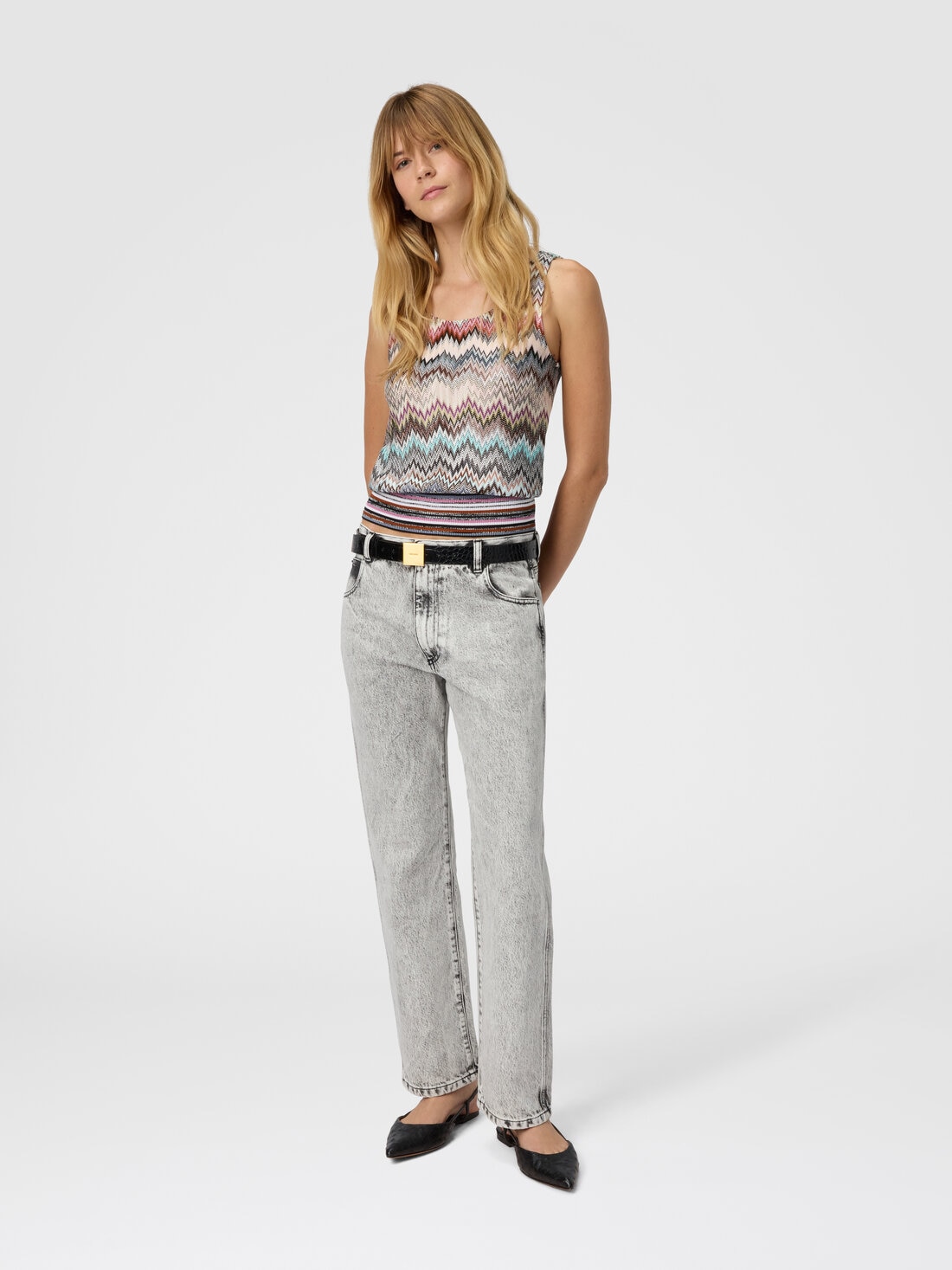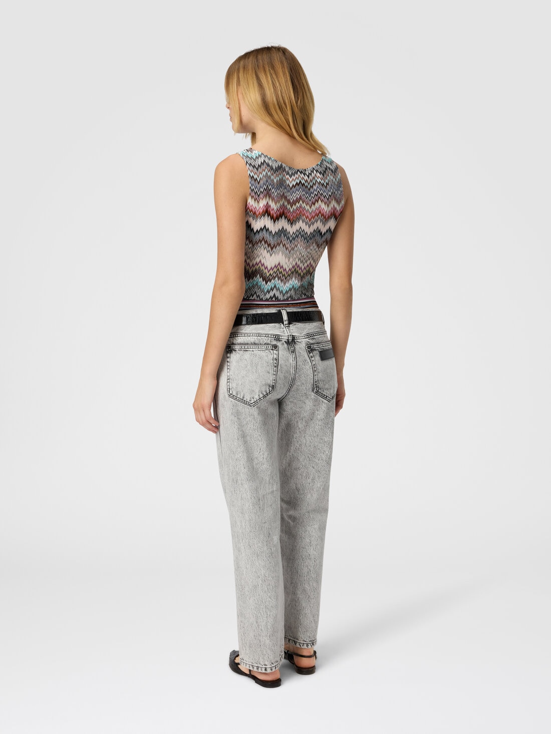 Sleeveless top in viscose with zigzag pattern