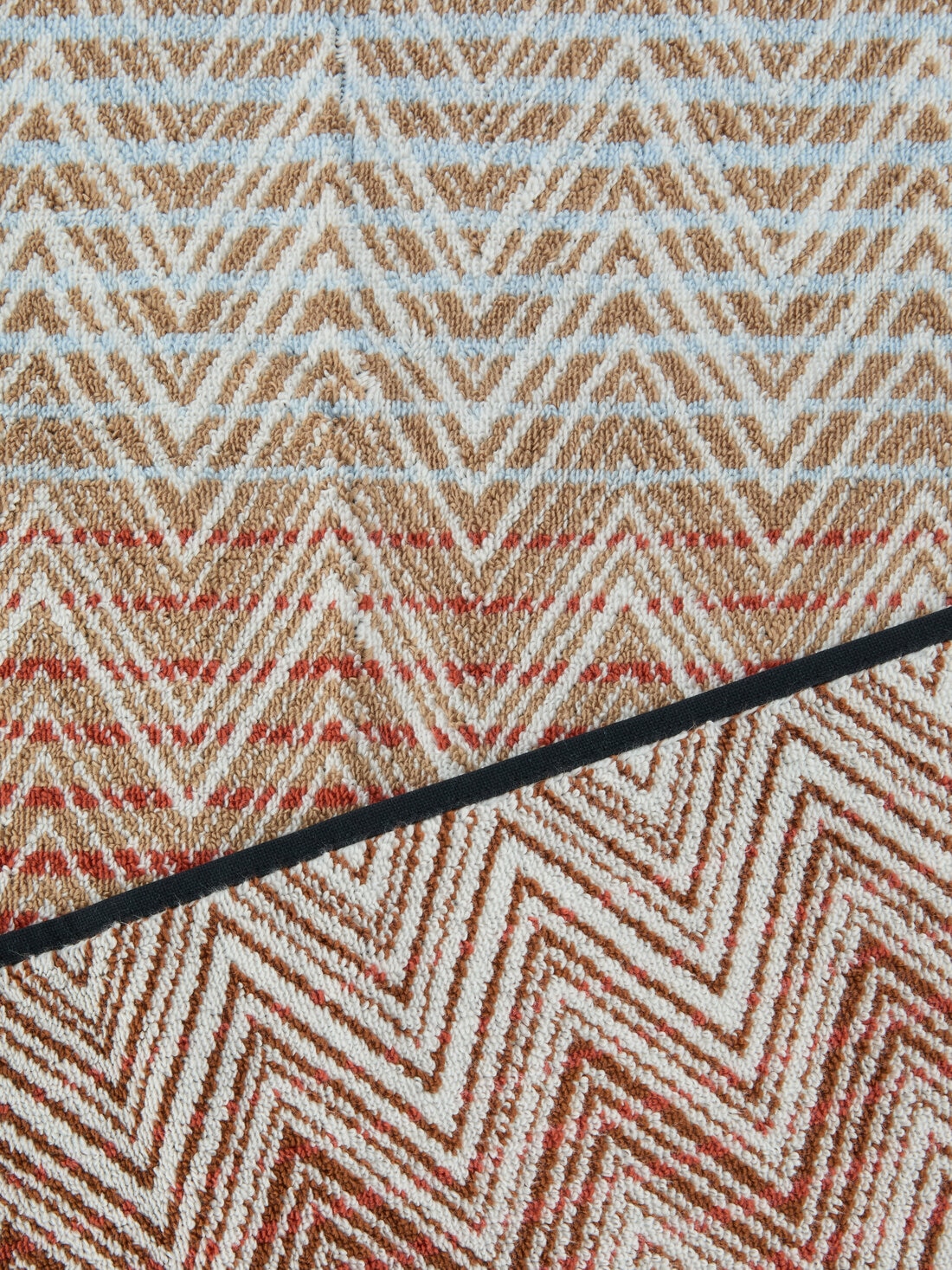 The Stone bath set by Missoni, consisting of two pieces in 100% cotton, embodies the essence of the renowned brand. Featuring the brand’s signature chevron pattern, the set is enhanced by a contrasting border that accentuates its refined design. Perfect for adding a touch of luxury and modernity to the bathroom, this set seamlessly blends functionality and style in an irresistible offering.